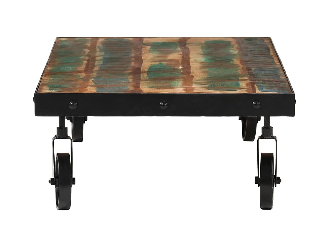 Tavolino con rotelle, legno massello di recupero, 100x55x26 cm