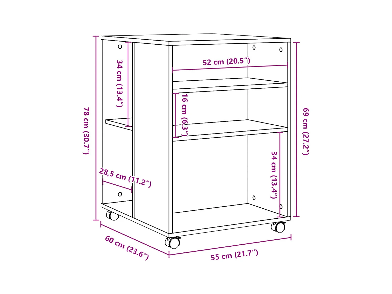Mobiletto con Ruote Grigio Cemento 60x48x81 cm in Truciolato