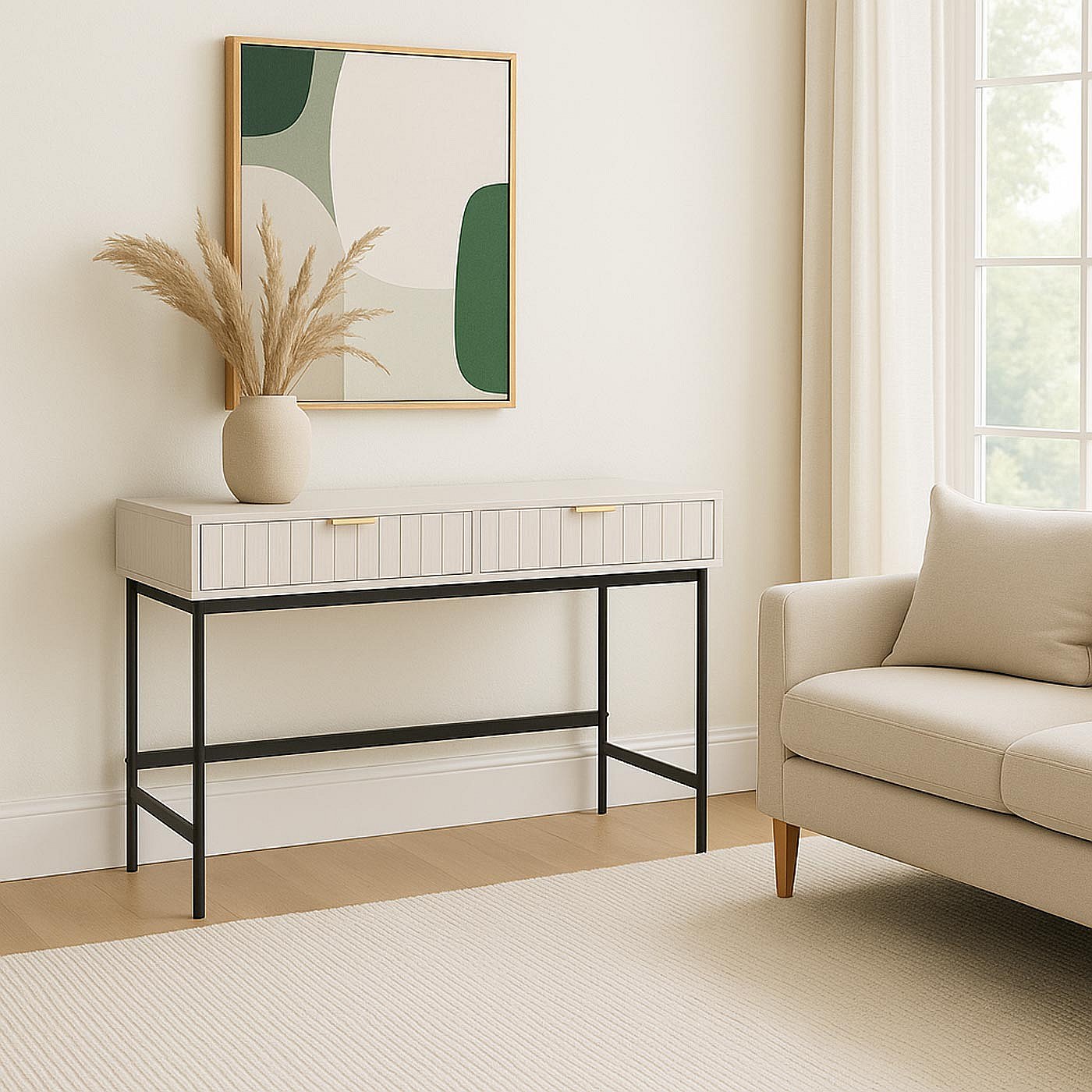 Scrivania consolle tavolino sideboard MCW-E92 legno effetto 3D 100x40cm bianco