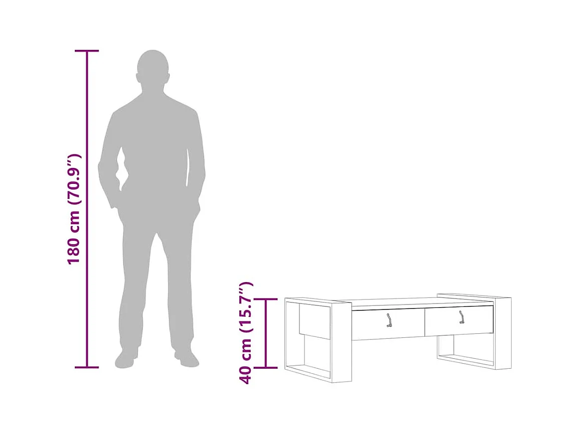 Tavolino da Salotto Rovere Fumo 102x50x40 cm Legno Multistrato