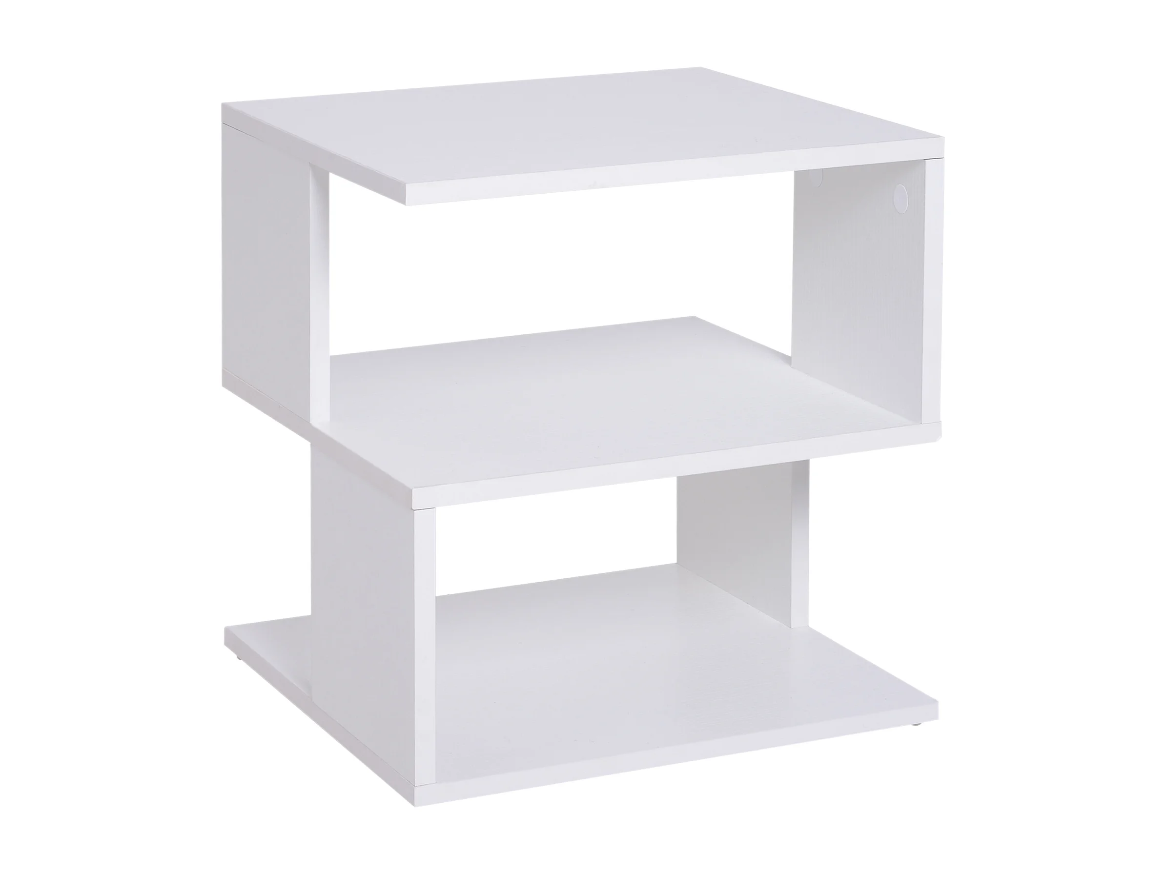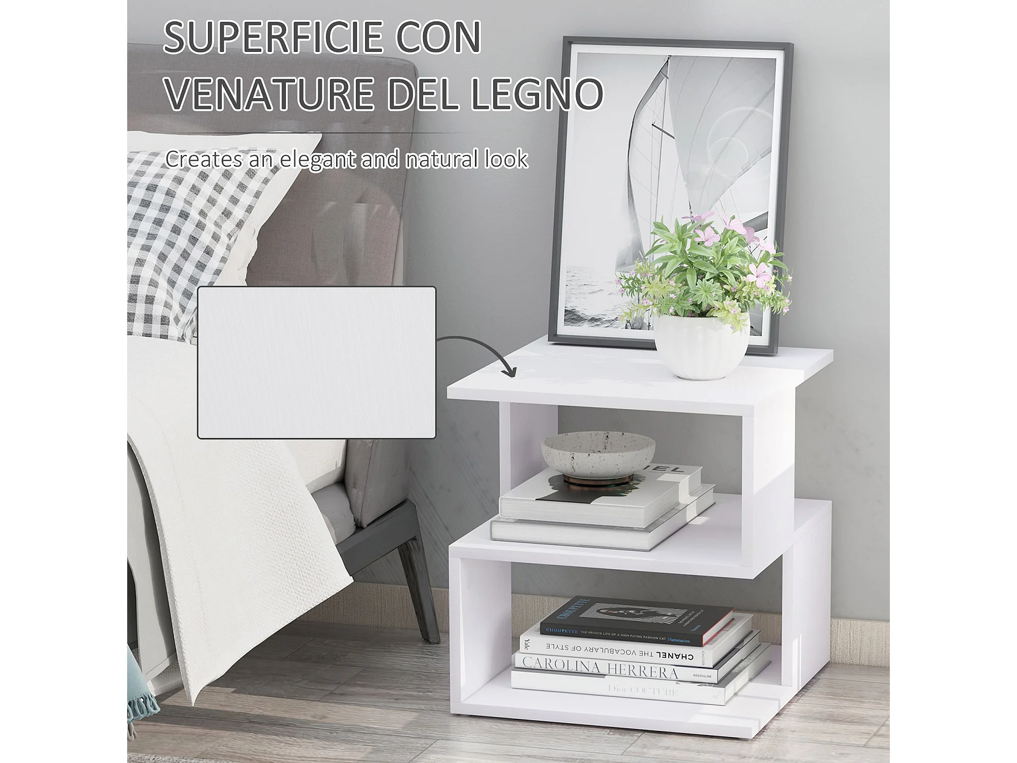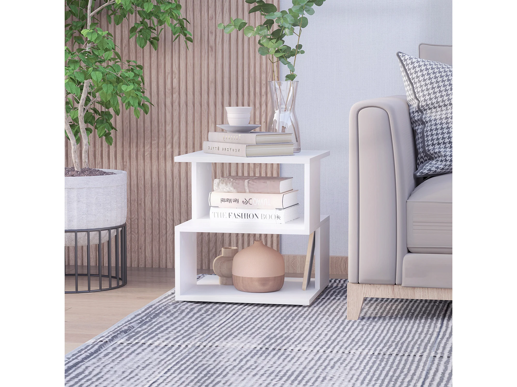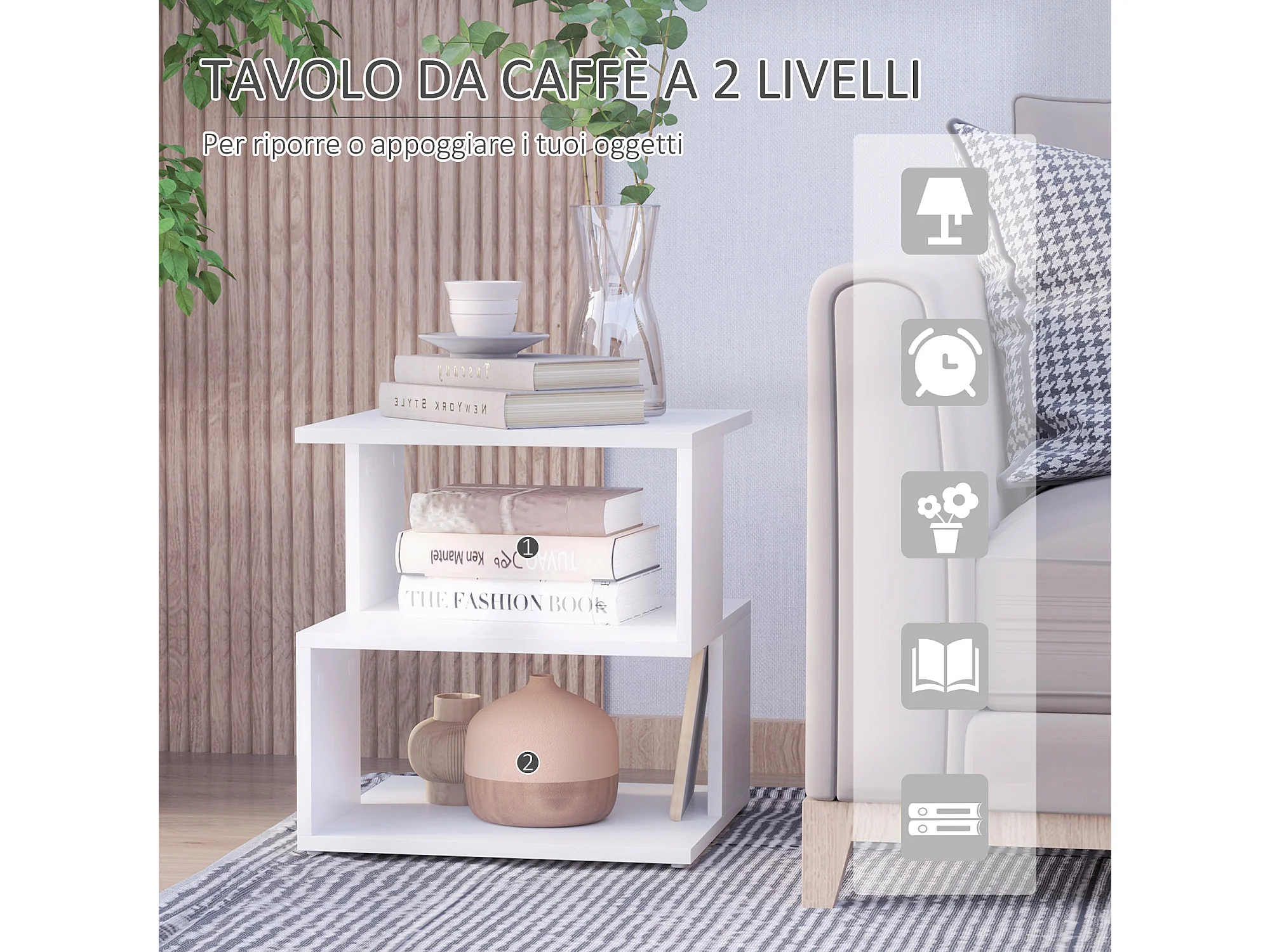 Tavolino da caffè moderno 2 livelli con ripiano aperto in legno bianco