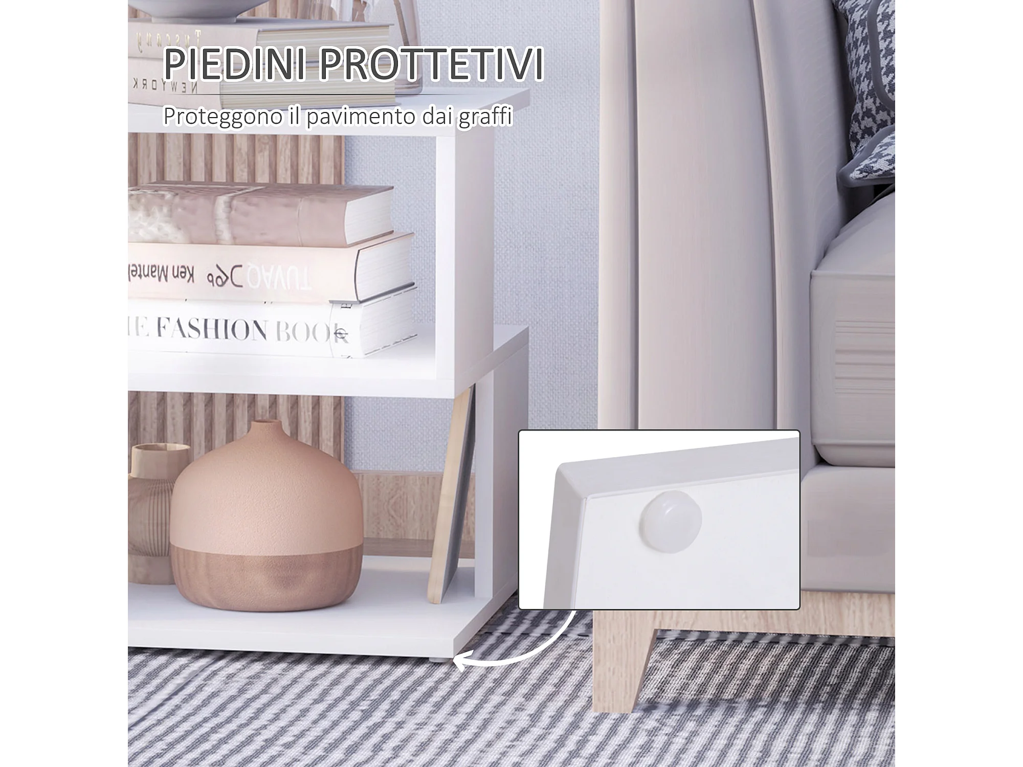 Tavolino da salotto a c con 2 ripiani aperti e 4 ruote girevoli bianco