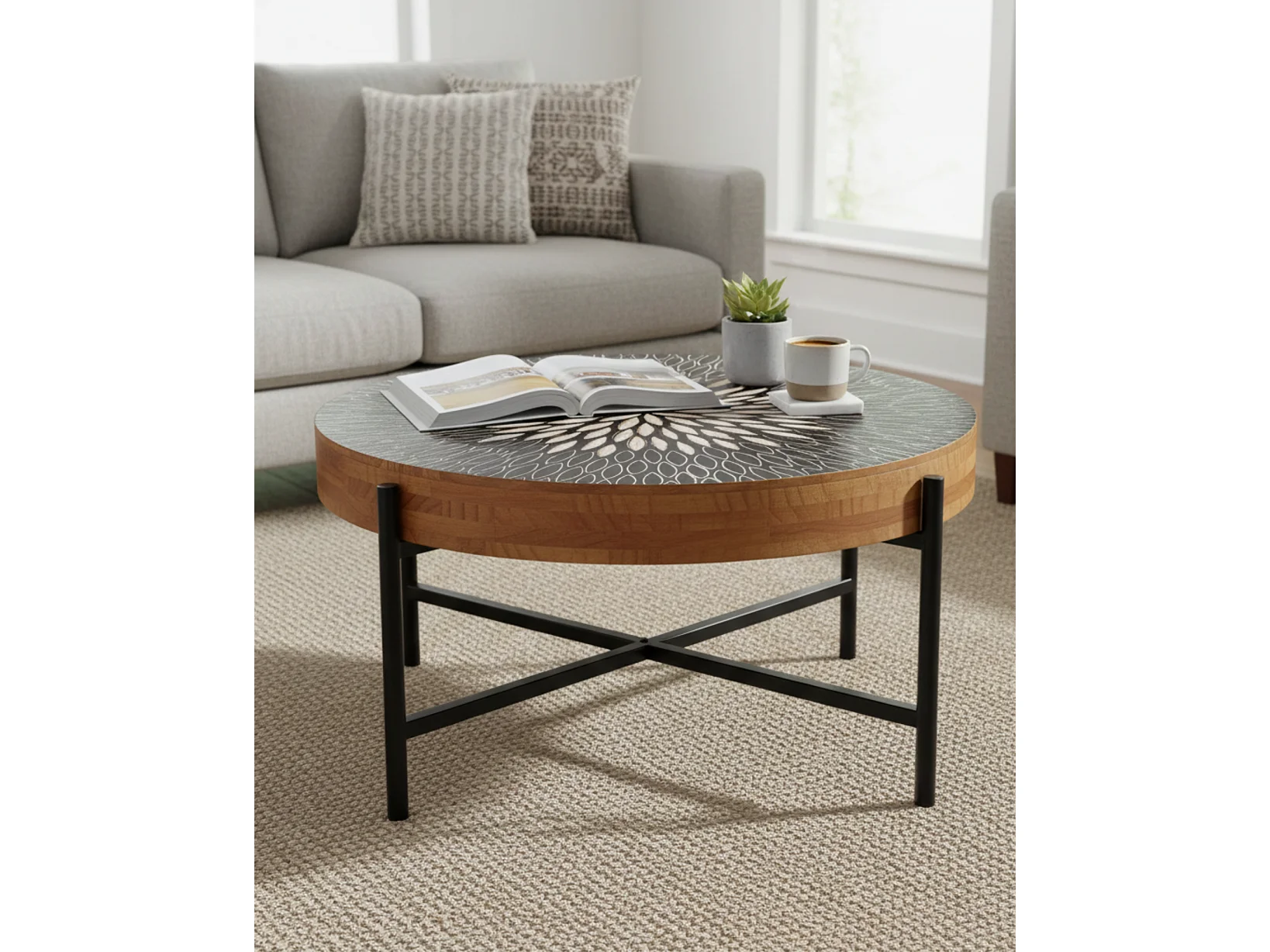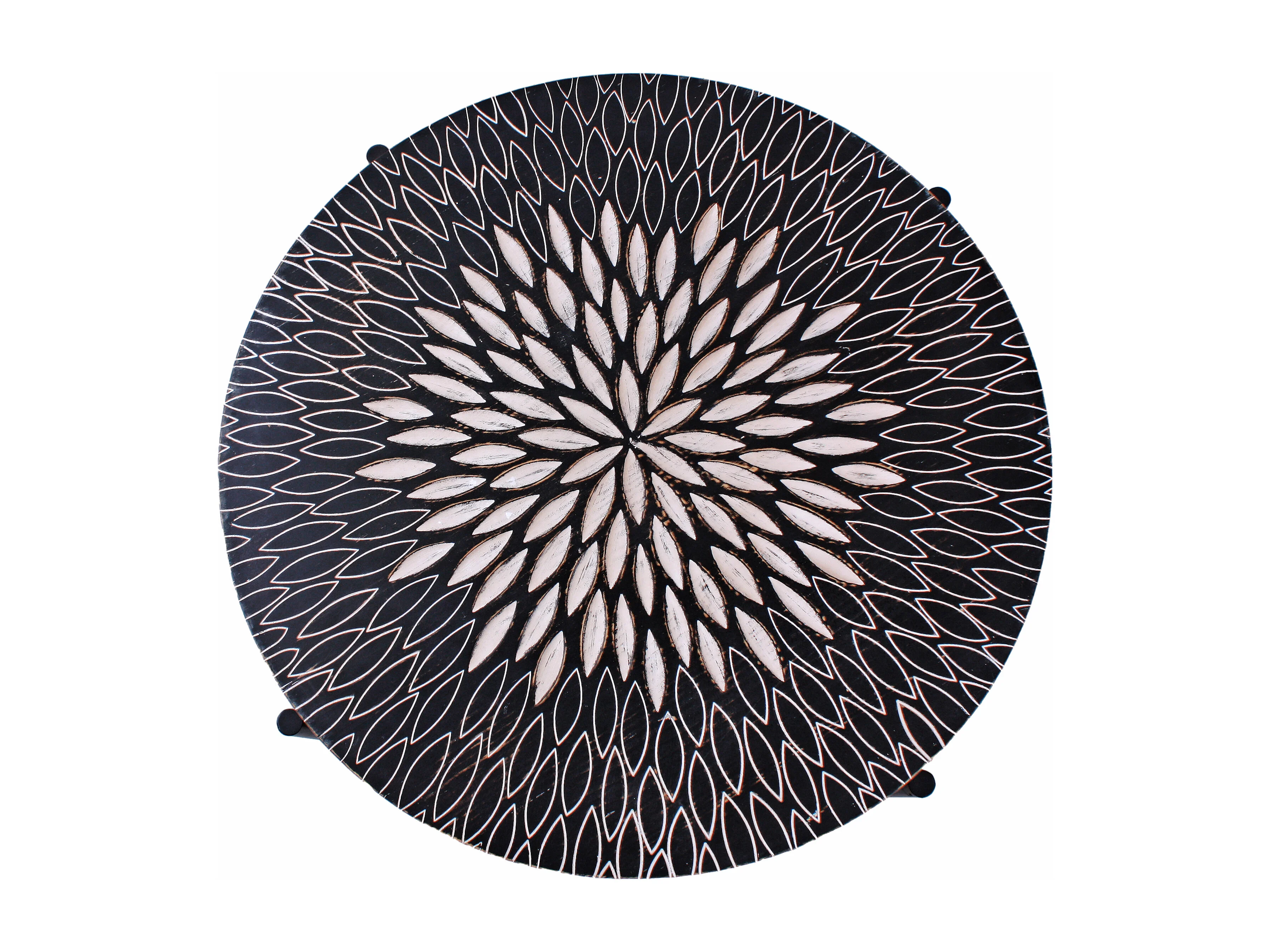 Tavolino da caffè rotondo "Bangkok" stile esotico dal design particolare a incisioni su legno