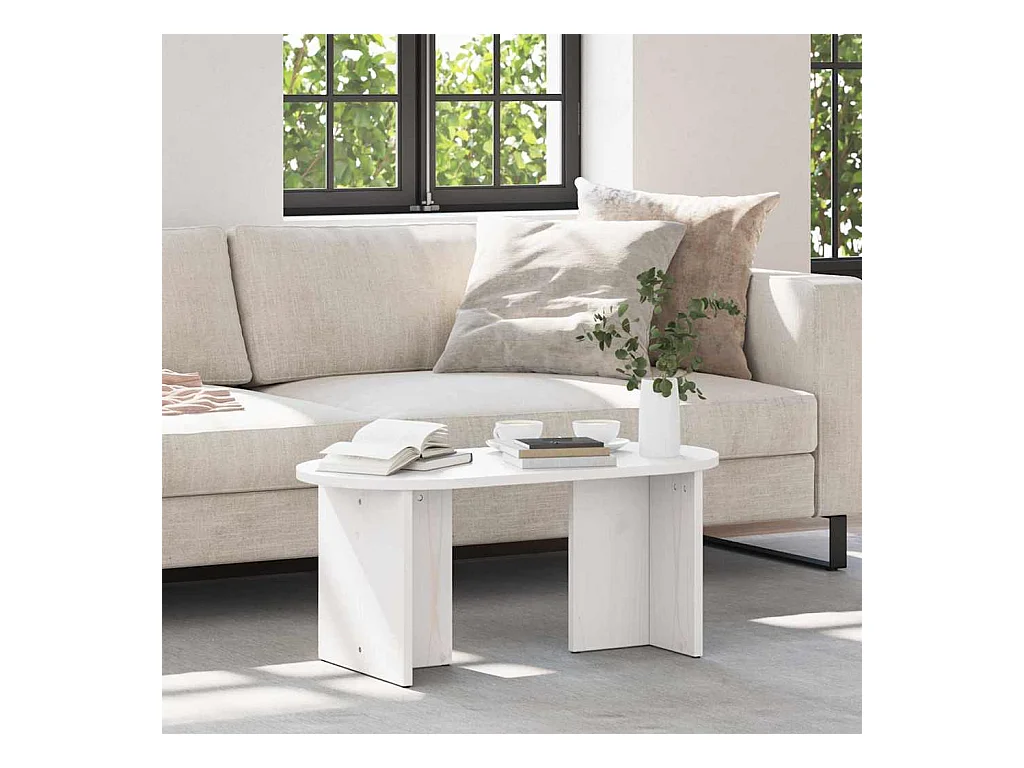 Tavolino da caffè Bianco 80x50x35 cm Legno massello di pino