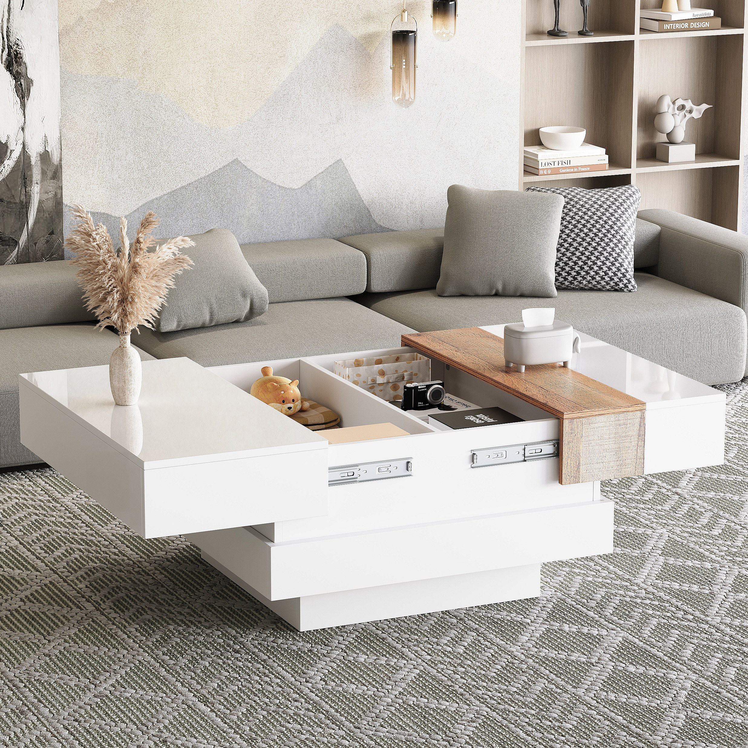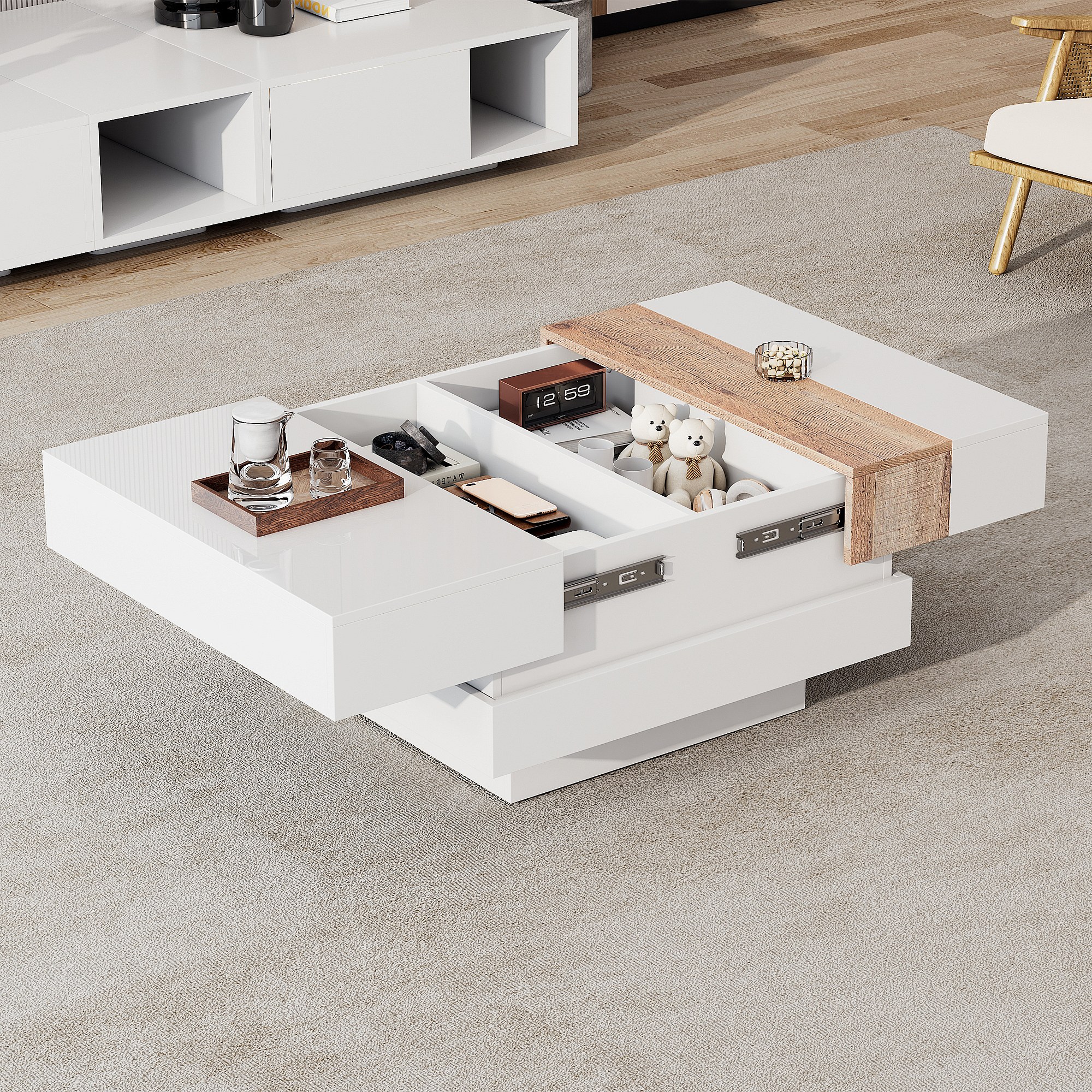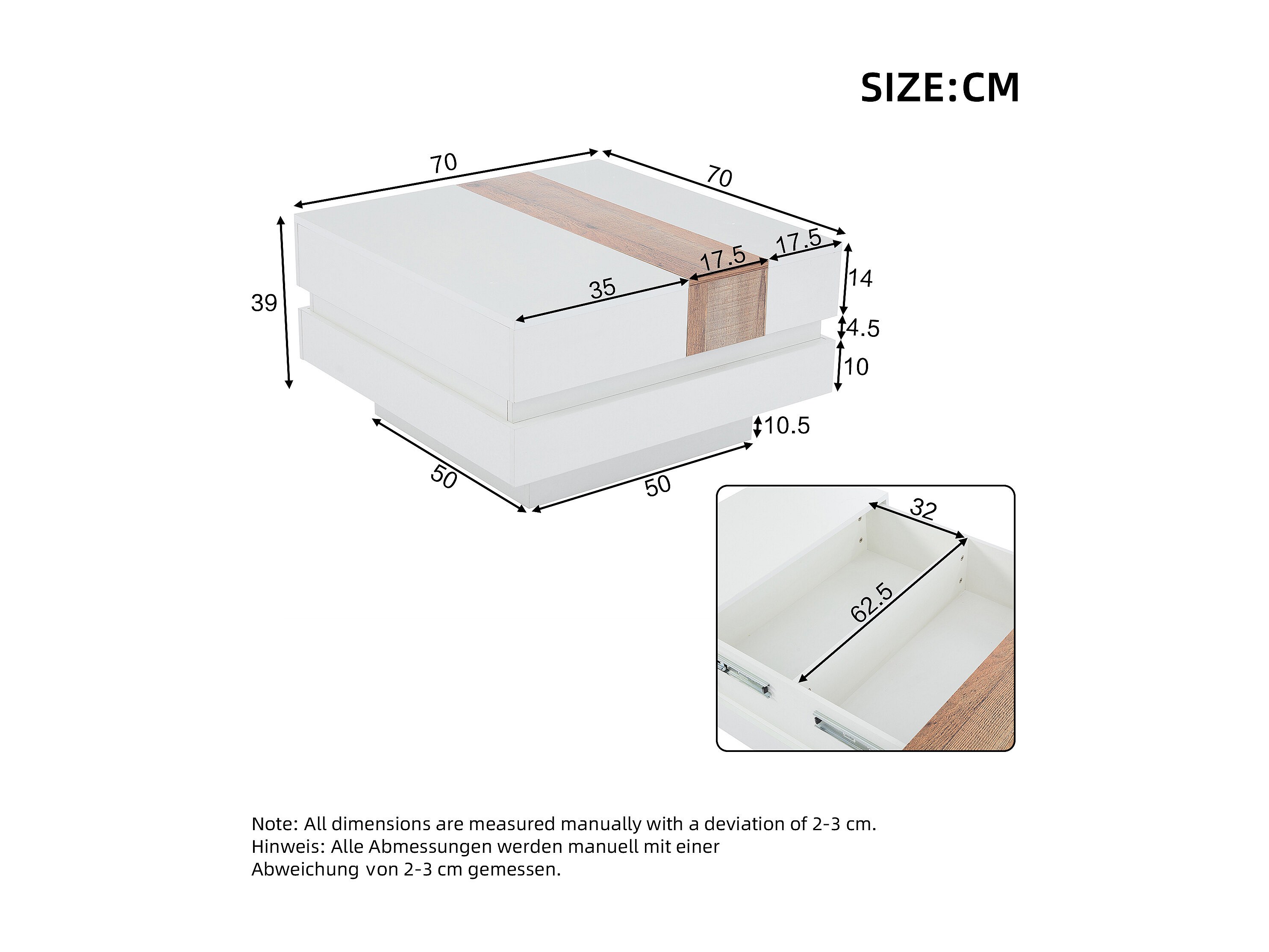 Tavolino da caffè quadrato bianco e nero - Tavolino da caffè con 3 cassetti e piano sollevabile - spazio di archiviazione aperto