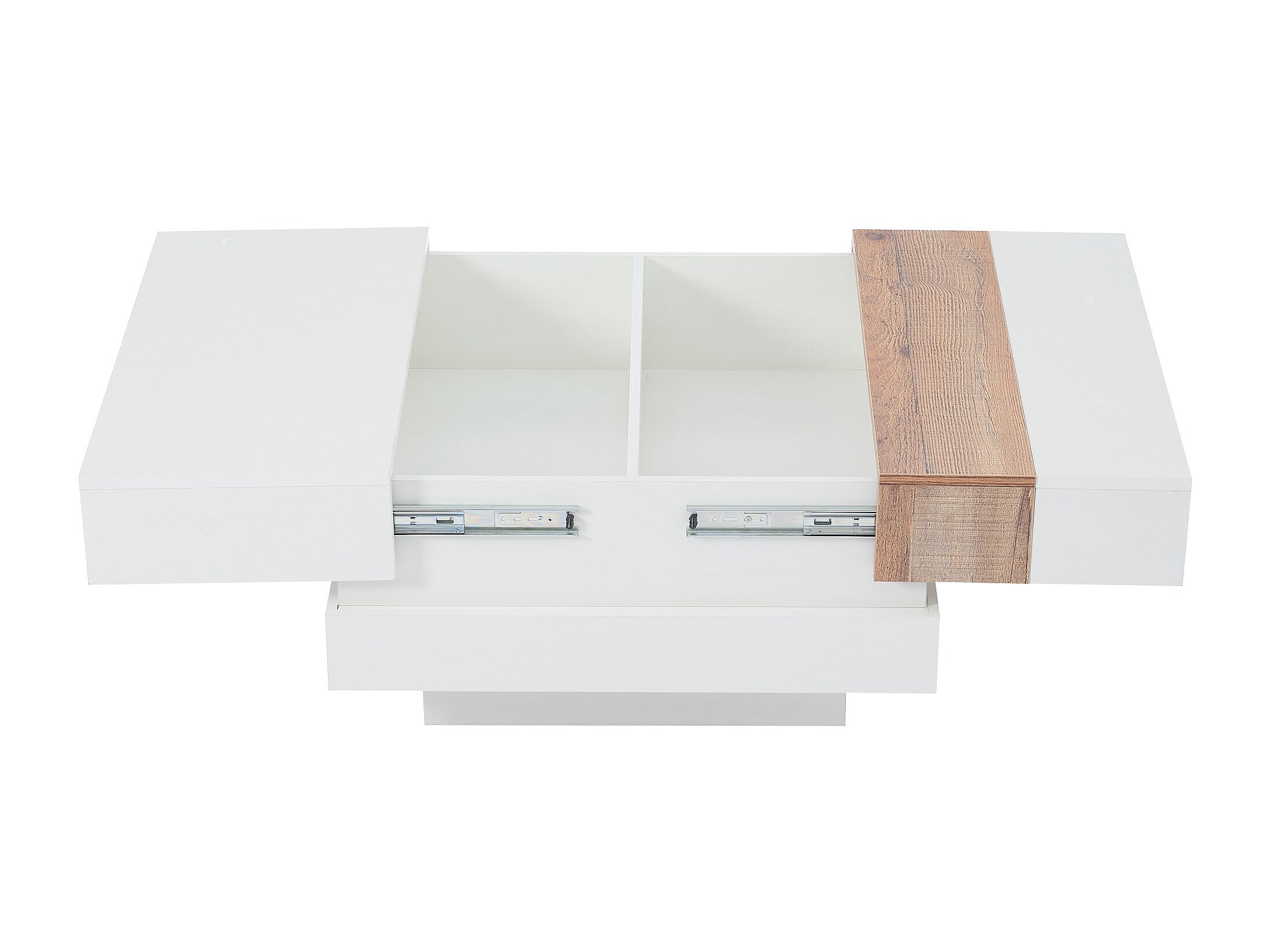 Tavolino da caffè bianco lucido - Tavolino con piano retrattile - 2 vani portaoggetti