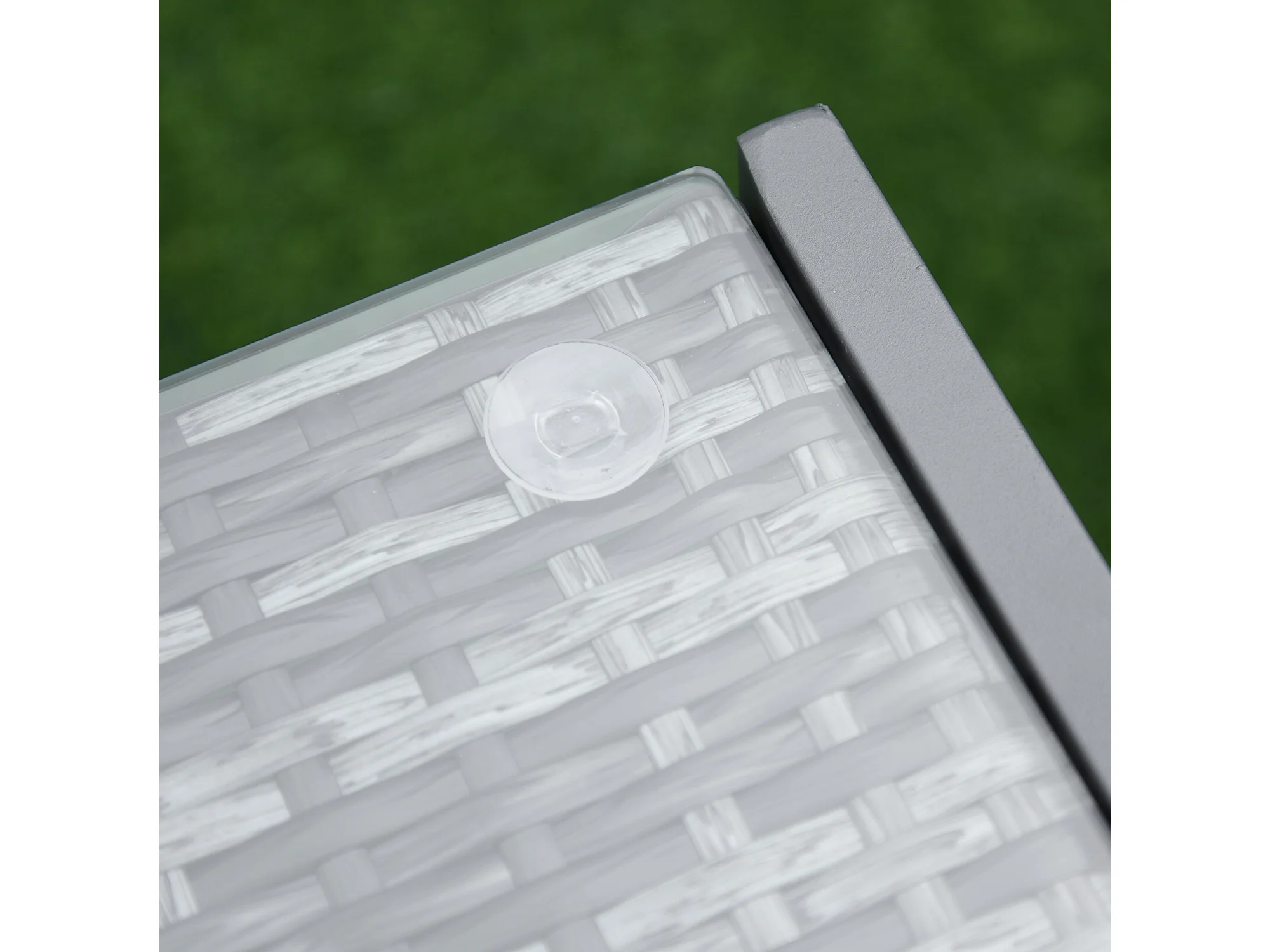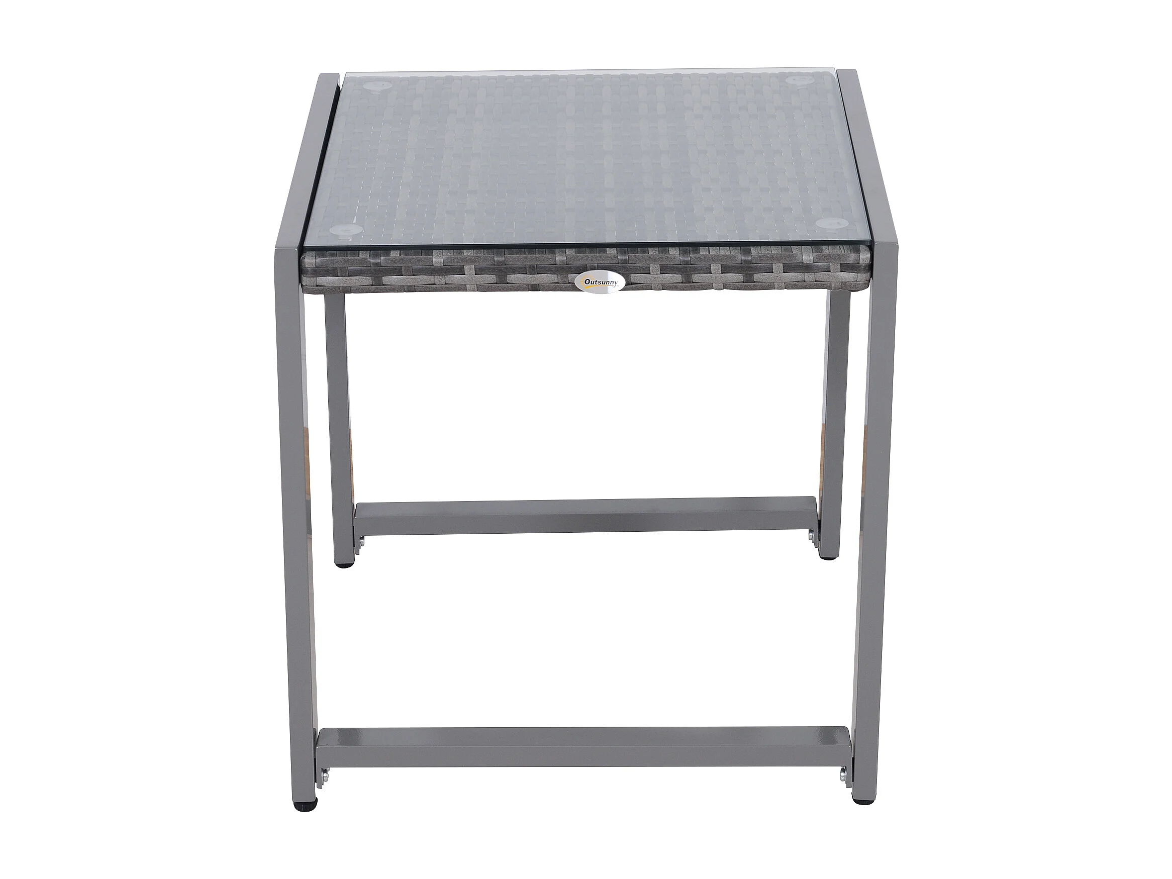 Tavolino da caffè da giardino in rattan con piano in vetro temperato