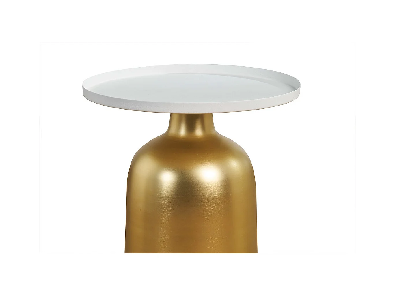Tavolino da caffè design rotondo in metallo dorato e ripiano bianco opaco RAMSES