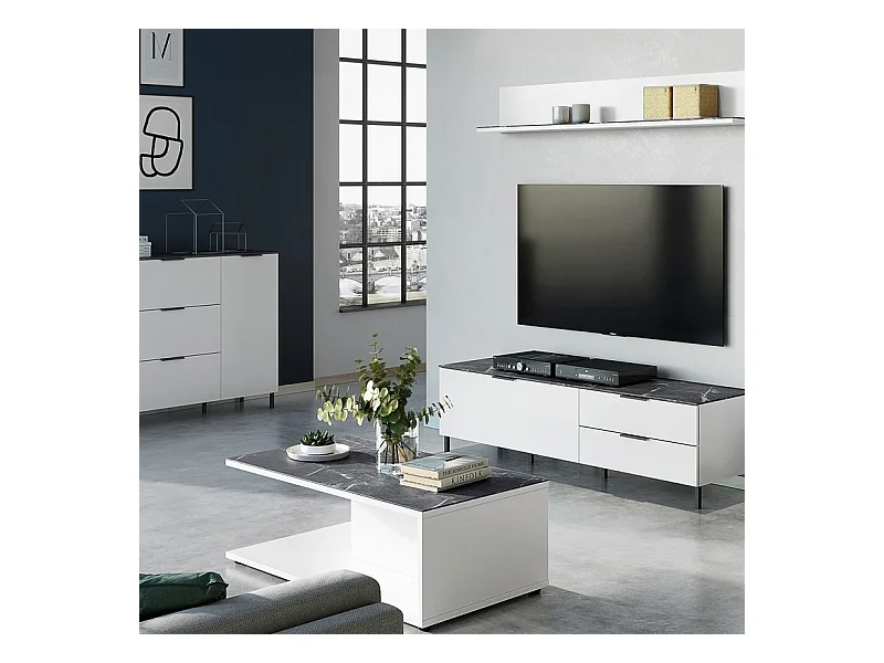 Tavolino contemporaneo bianco 100 x 55 cm con ripiani LORIE