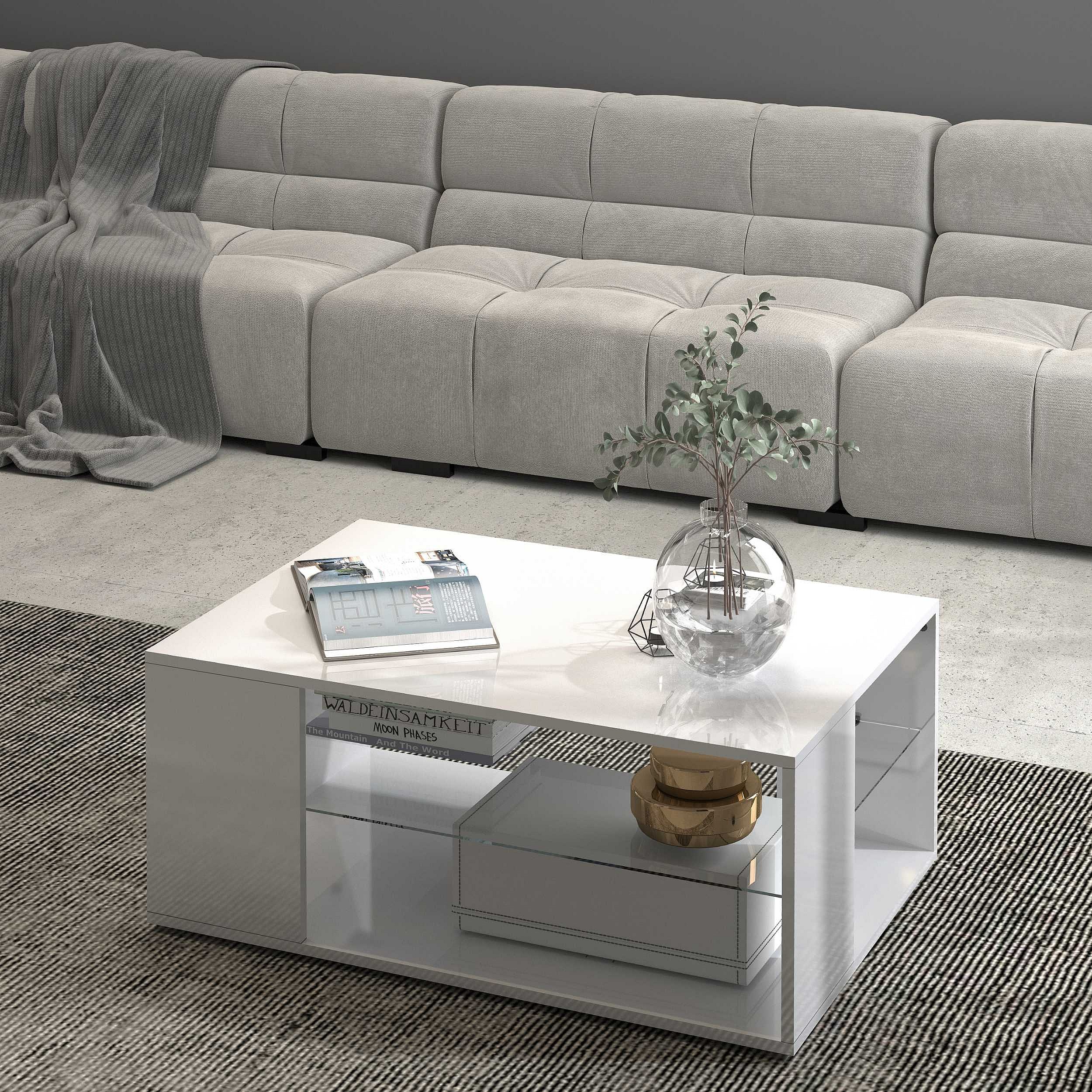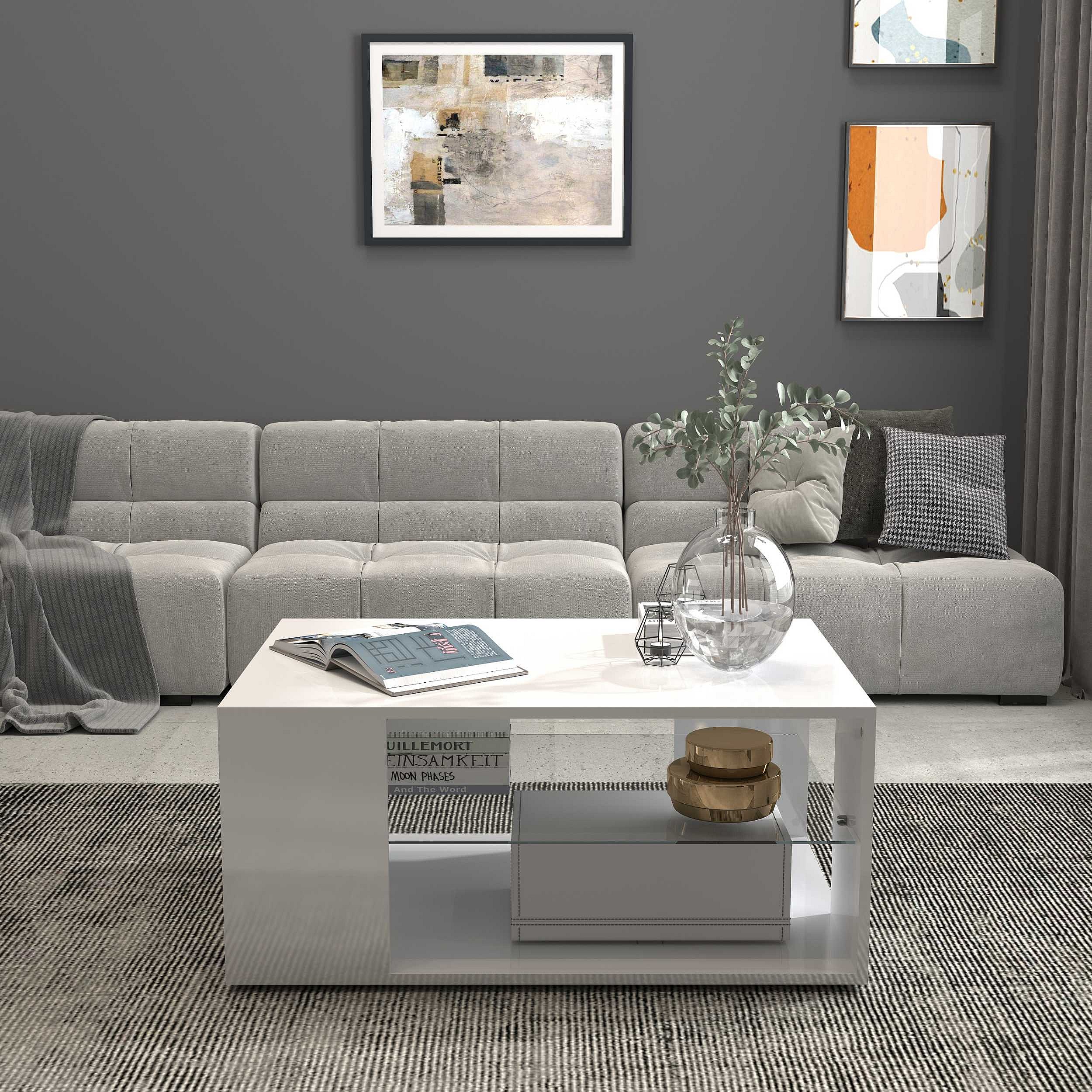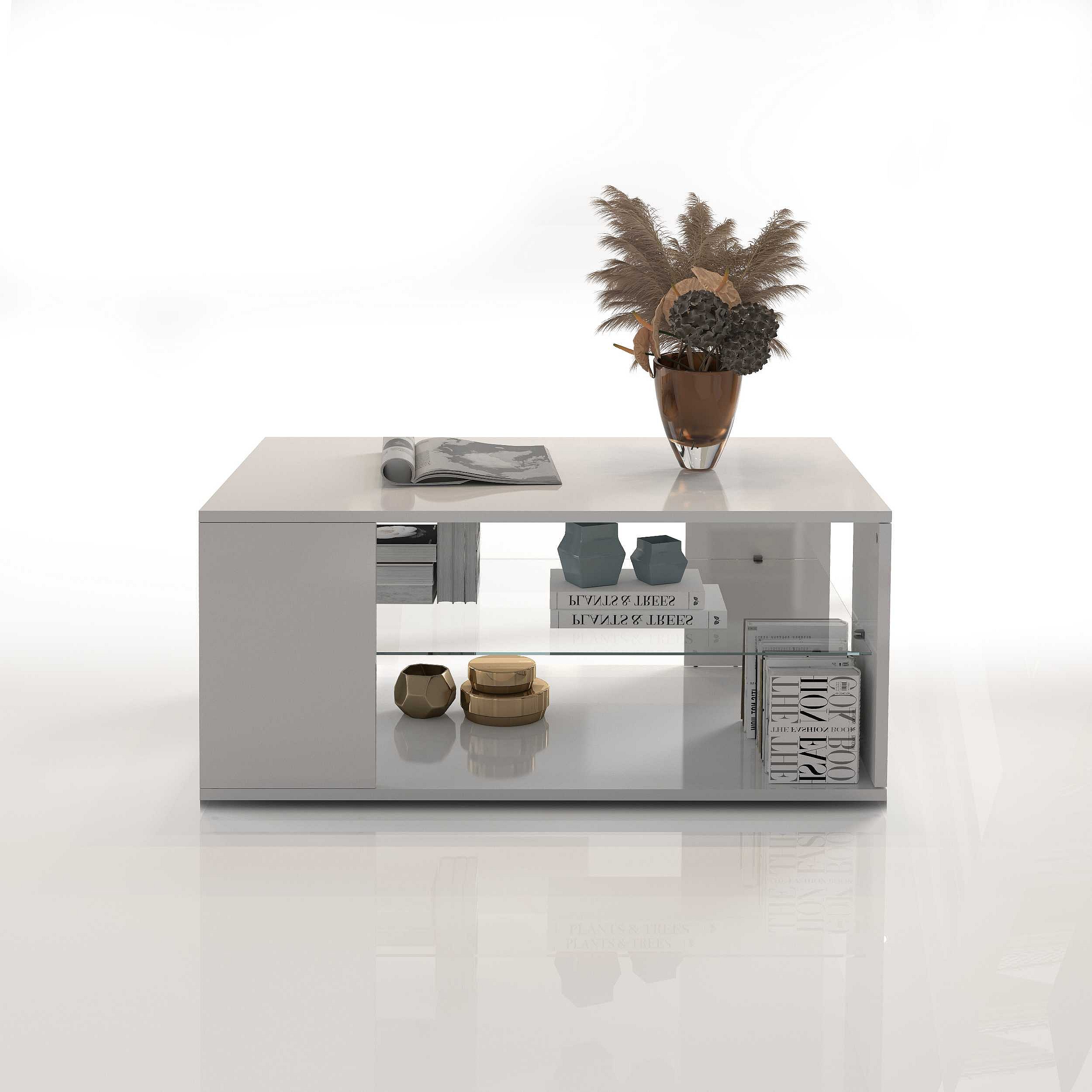 Tavolino da caffè Egypt con ripiano in vetro bianco lucido 90x60x40 cm