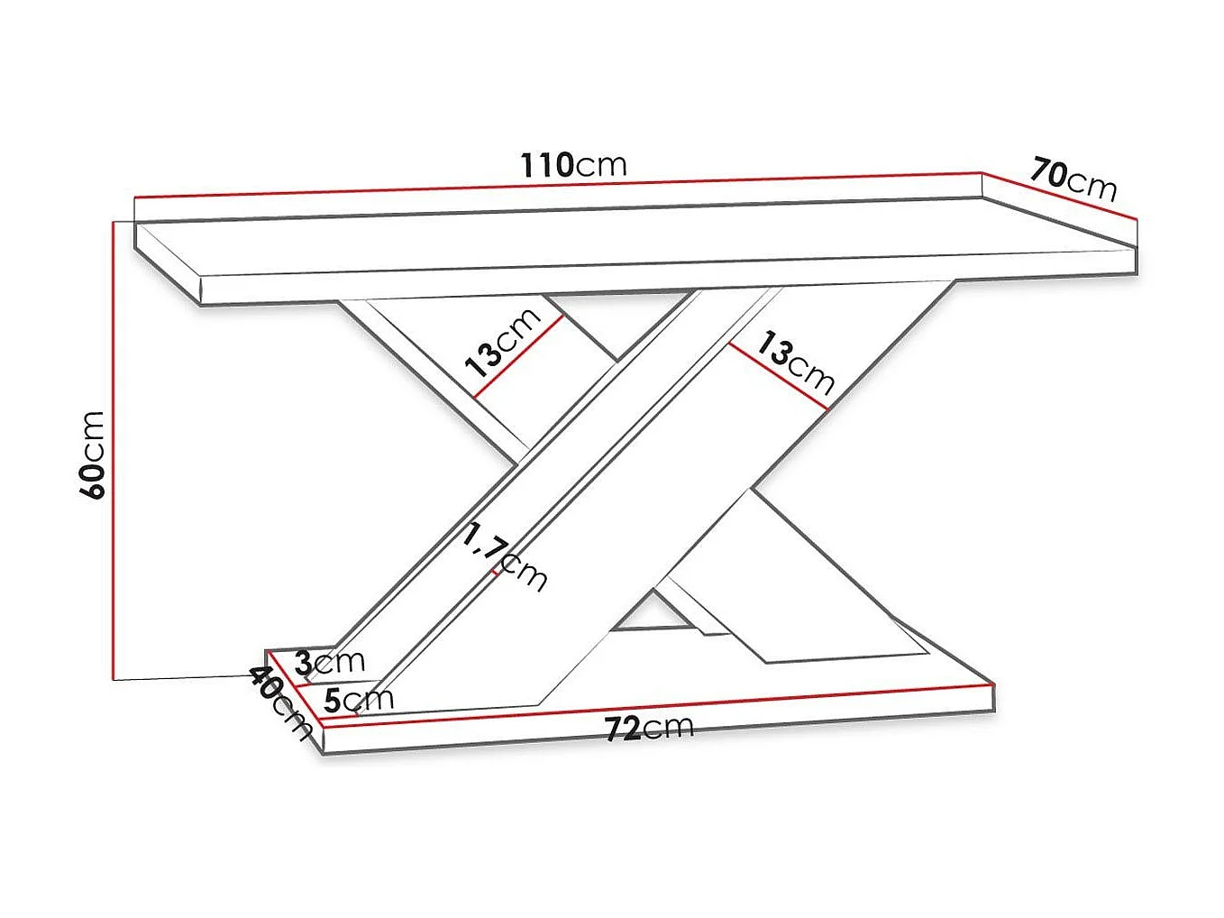 Tavolino da caffè 40x60x60 cm Nero Lupe 60