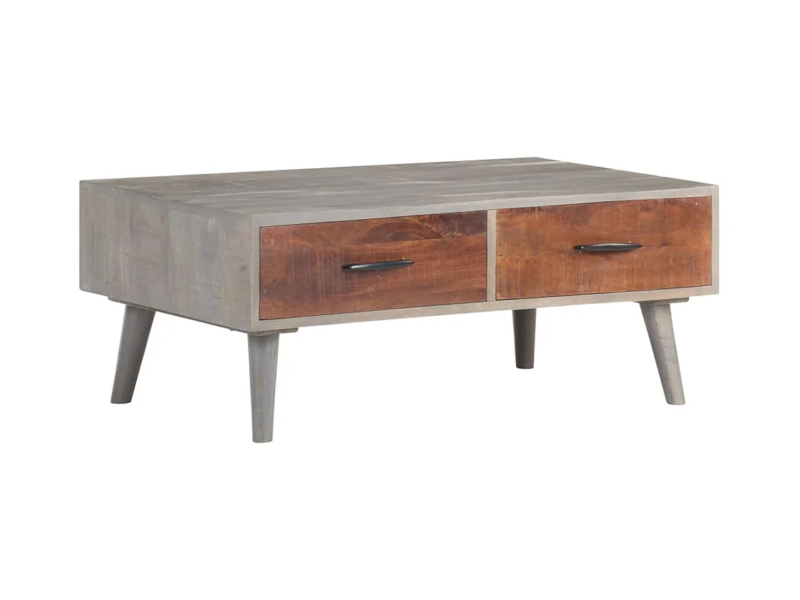 Tavolino da caffè Grigio 100x60x40 cm Legno massello di mango grezzo