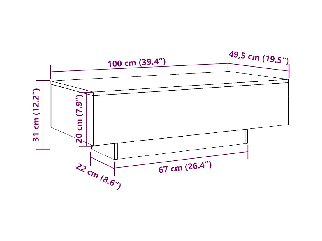 Tavolino Sonoma grigio 100x49,5x31 cm in legno ingegnerizzato