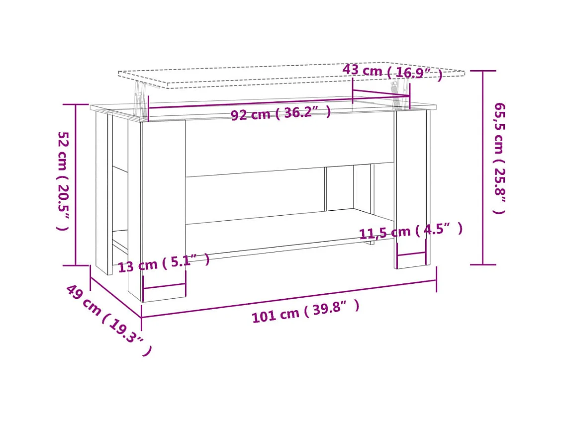 Tavolino Sonoma grigio 101x49x52 cm Legno ingegnerizzato
