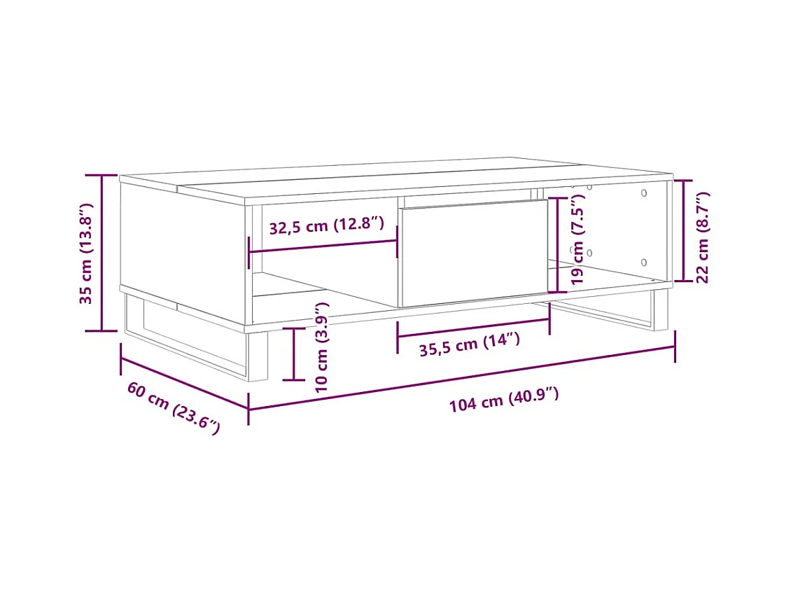 Tavolino grigio 103,5x60x35 cm in legno ingegnerizzato