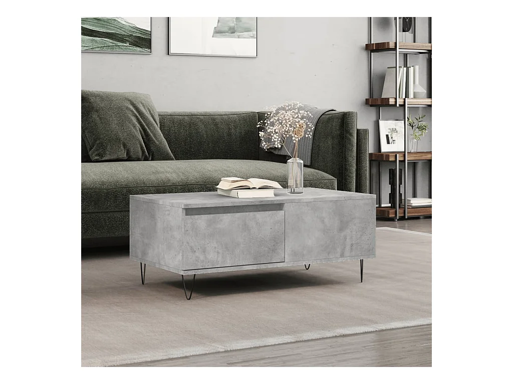 Tavolino da caffè grigio cemento 90x50x36,5 cm in legno ingegnerizzato