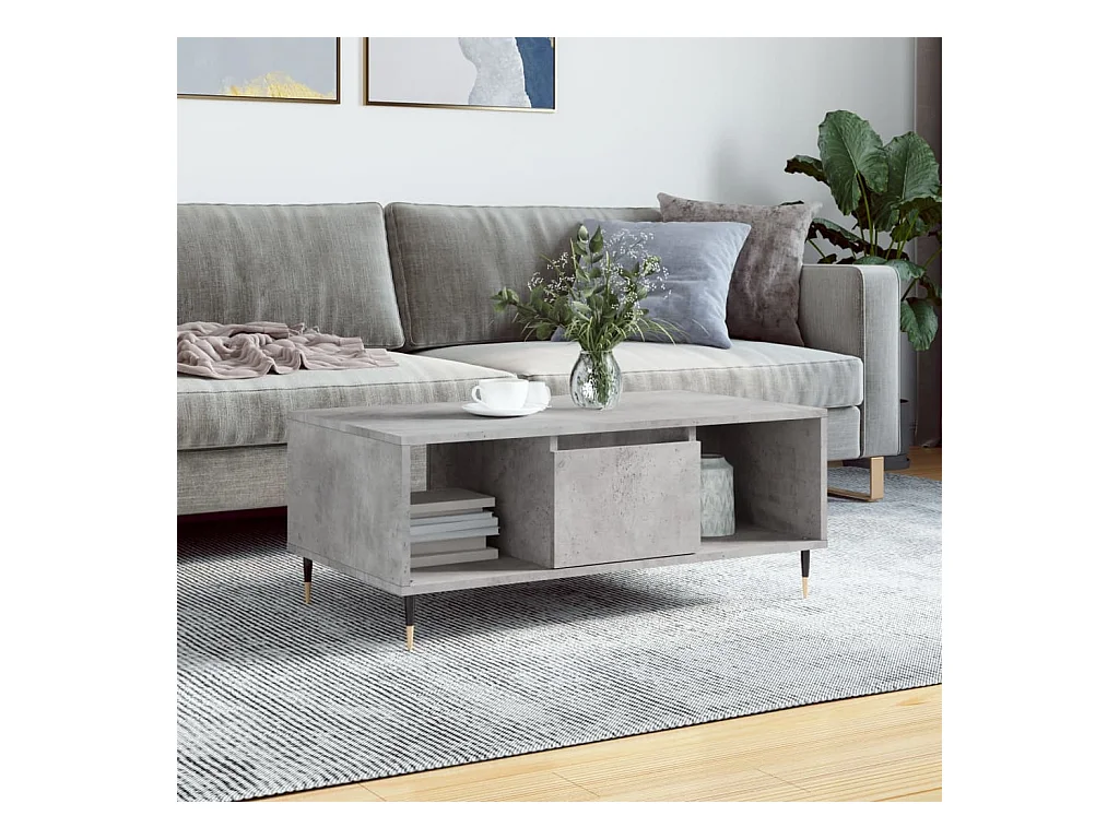 Tavolino da caffè grigio cemento 90x50x36,5 cm in legno ingegnerizzato