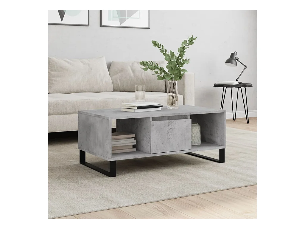 Tavolino da caffè grigio cemento 90x50x36,5 cm in legno ingegnerizzato