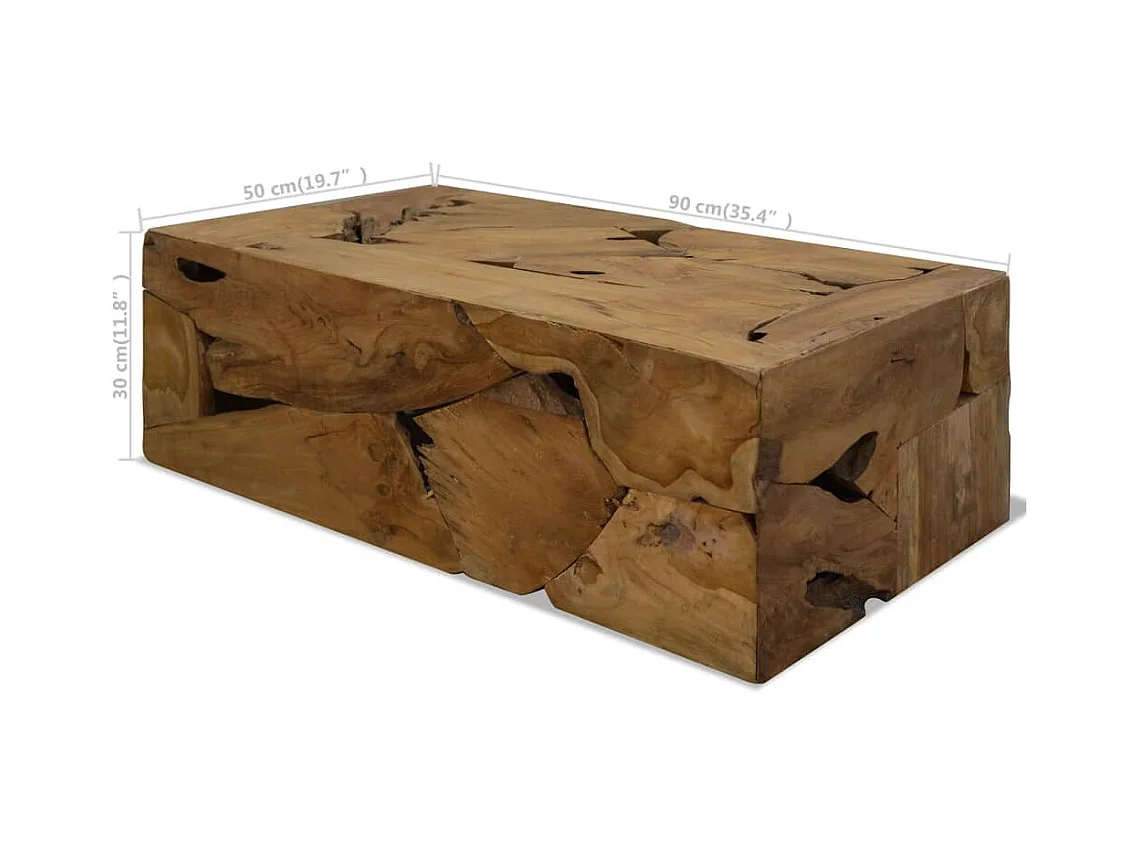 Tavolino da Caffè in Autentico Legno di Teak 90x50x30cm Marrone