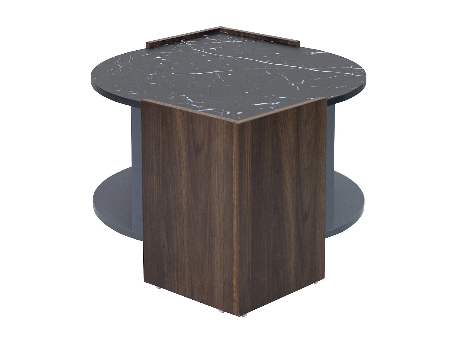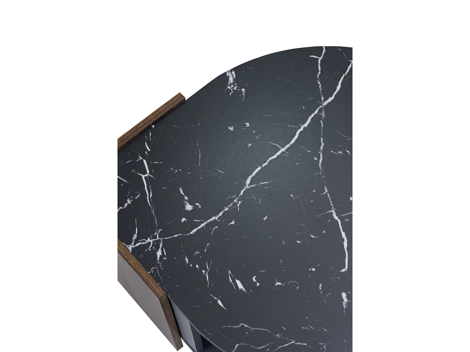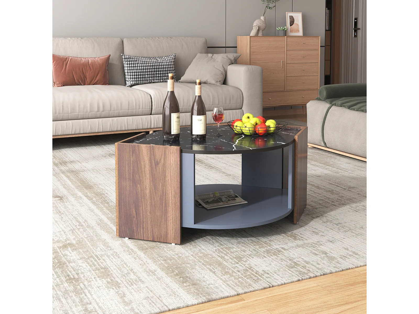 Tavolino da caffè in marmo e noce - Colori contrastanti, legno con cassetto e vano portaoggetti aperto
