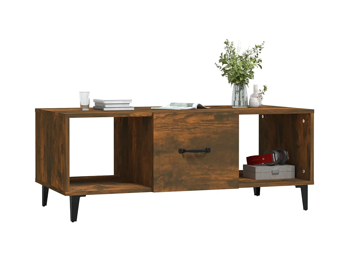Tavolino da caffè in rovere affumicato 102x50x40 cm in legno ingegnerizzato