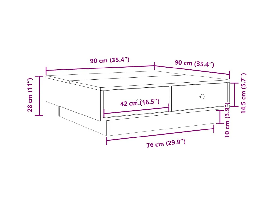 Tavolino da caffè in rovere affumicato 90x90x28 cm in legno ingegnerizzato