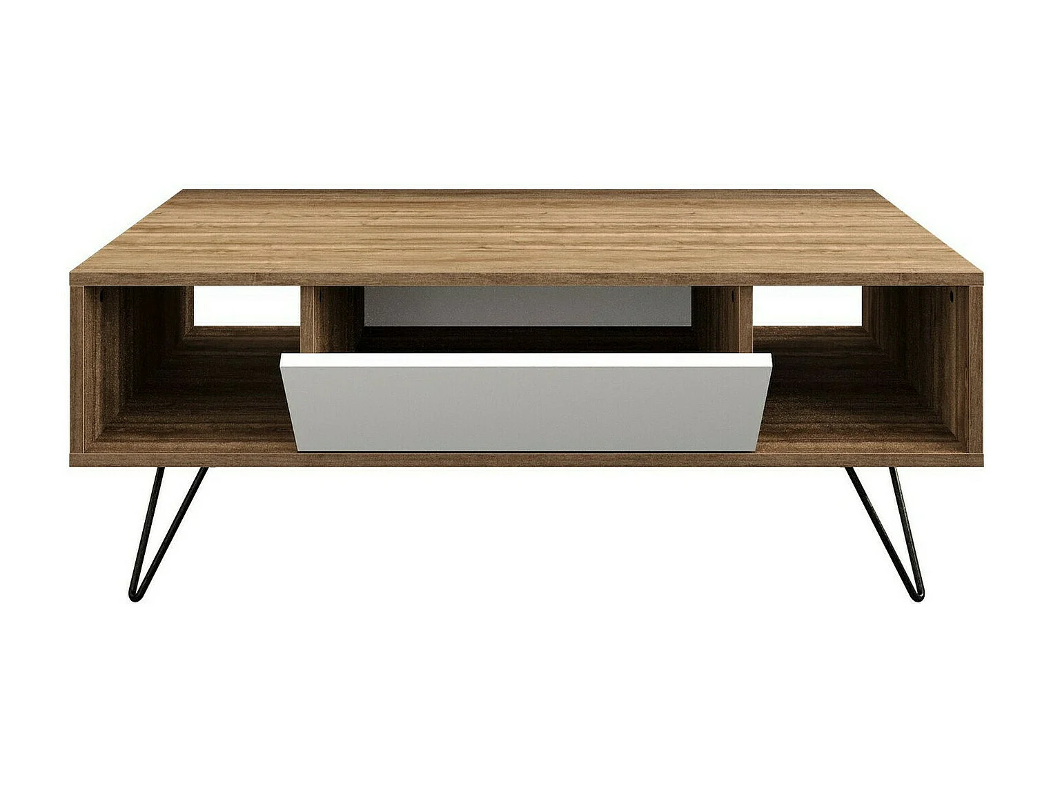 Tavolino da caffè Kailua 1211, Bianco|Noce, 46x60x120cm, Truciolare laminato, Angolare
