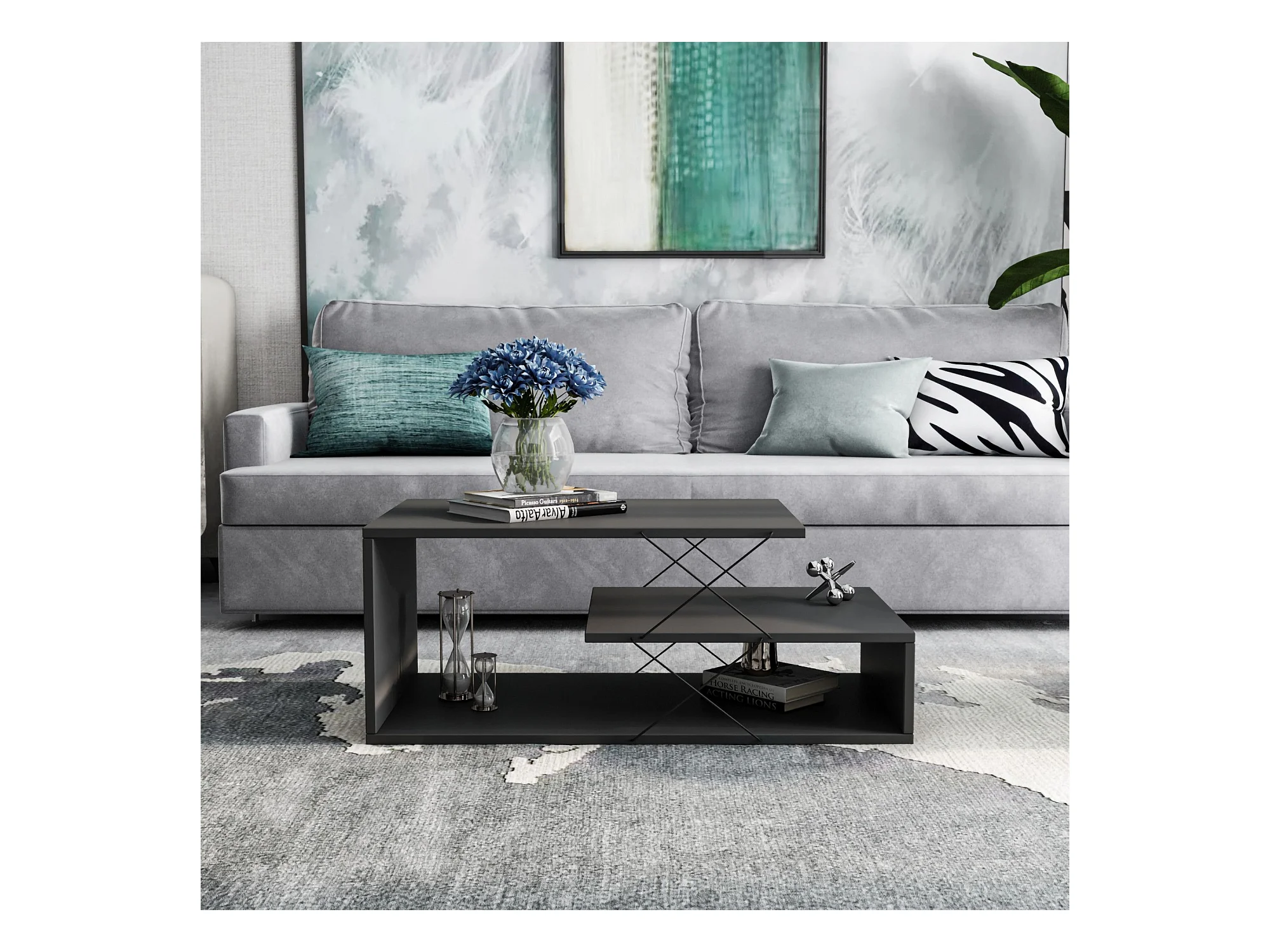 Tavolino da caffè Kailua 1411, Antracite, 40x50x100cm, Truciolare laminato, Angolare