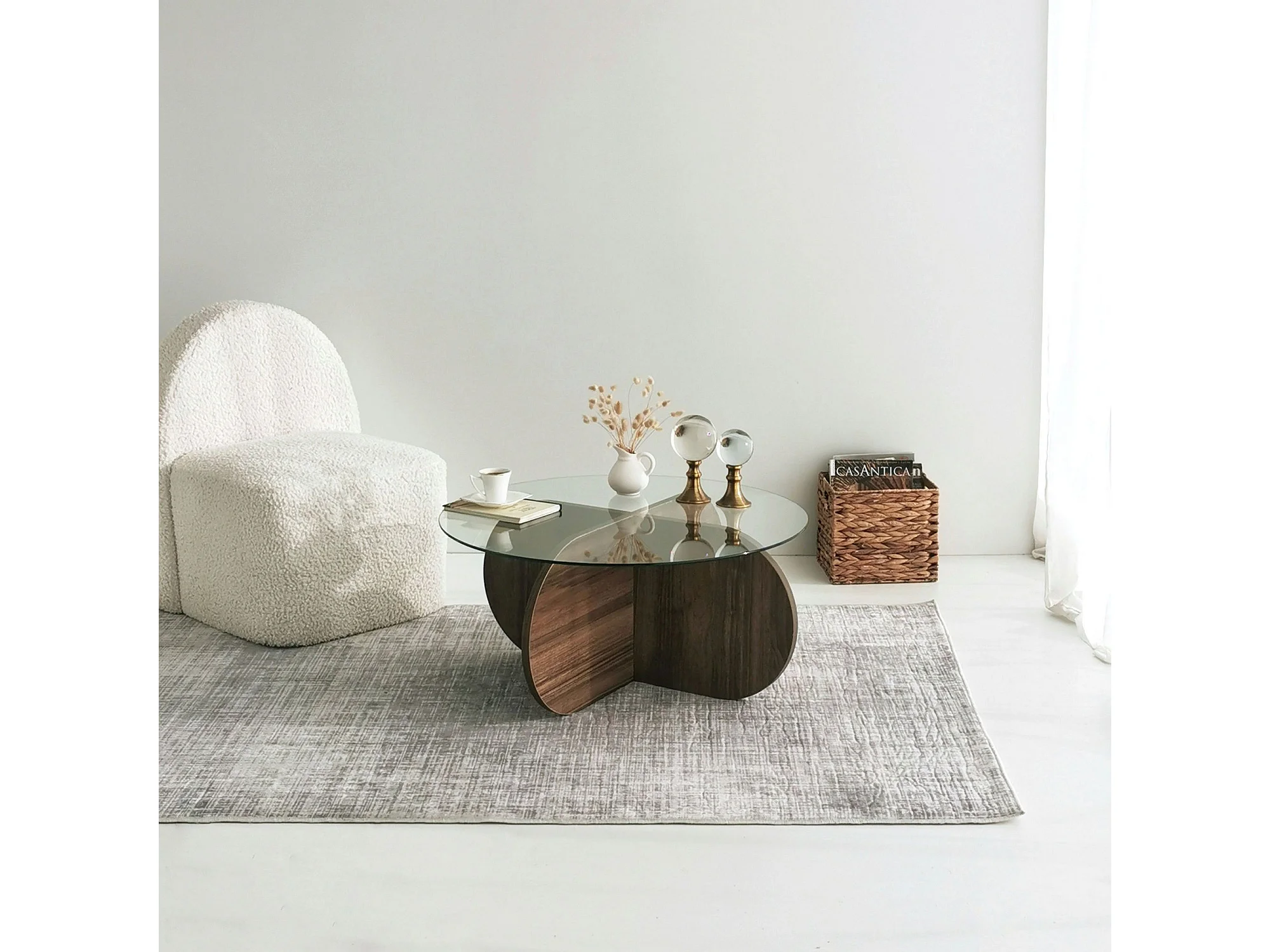 Tavolino da caffè Kailua 239, Noce, 35cm, Diametro: 75, Vetro temperato, Round