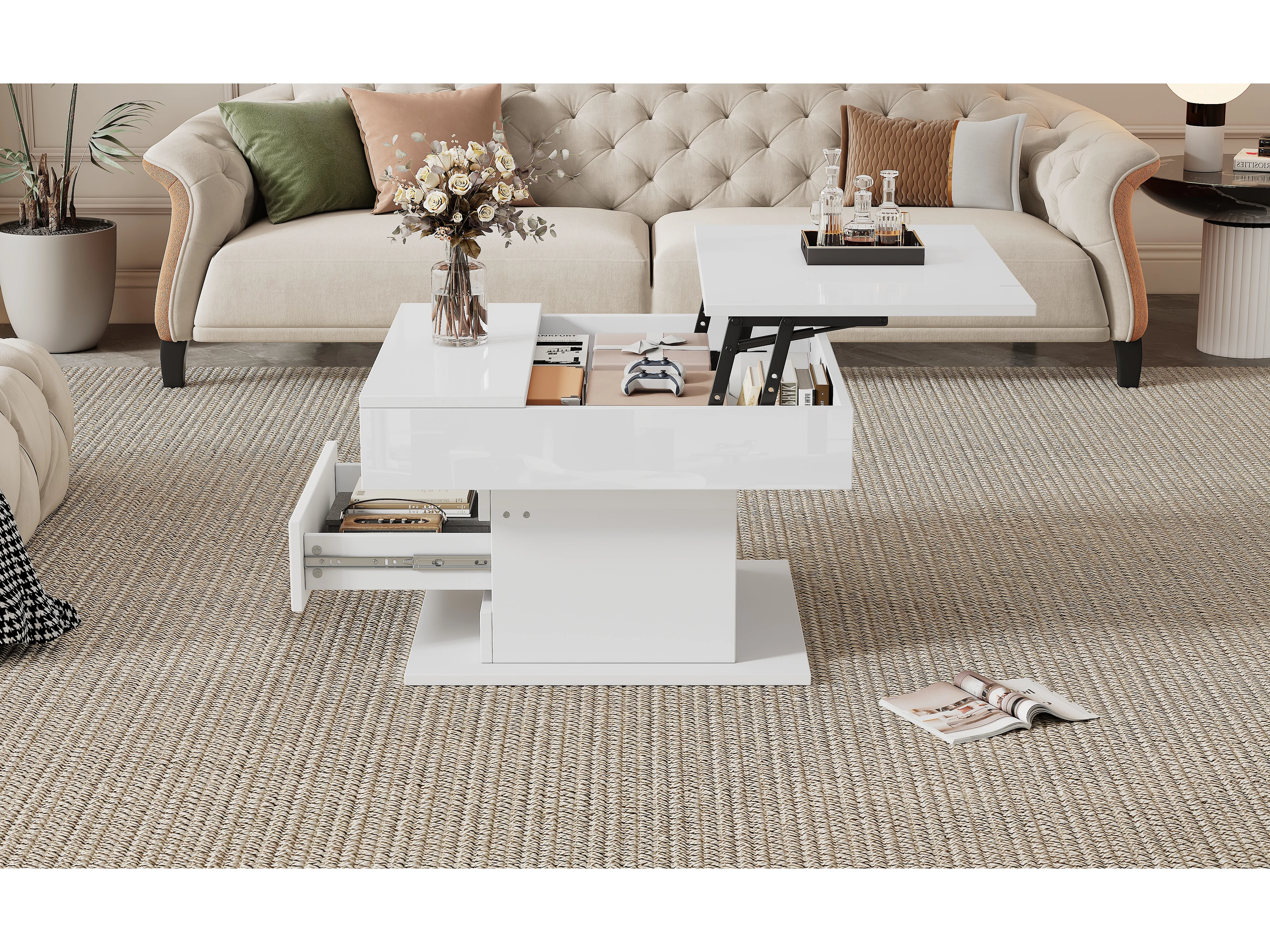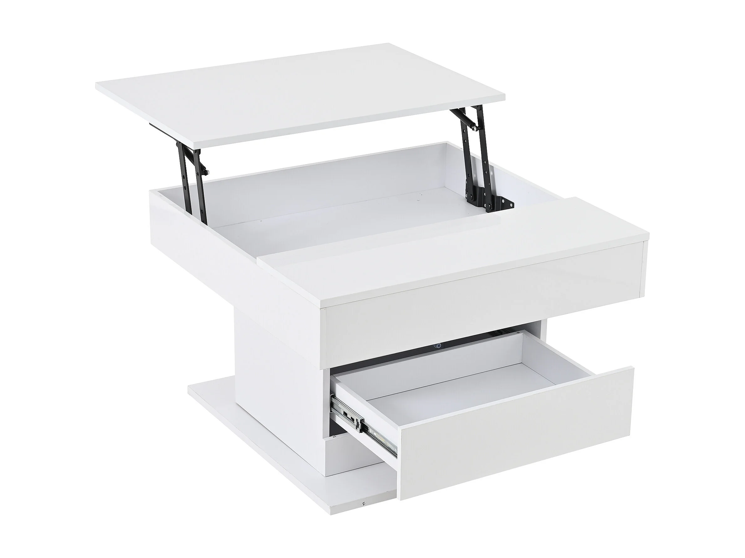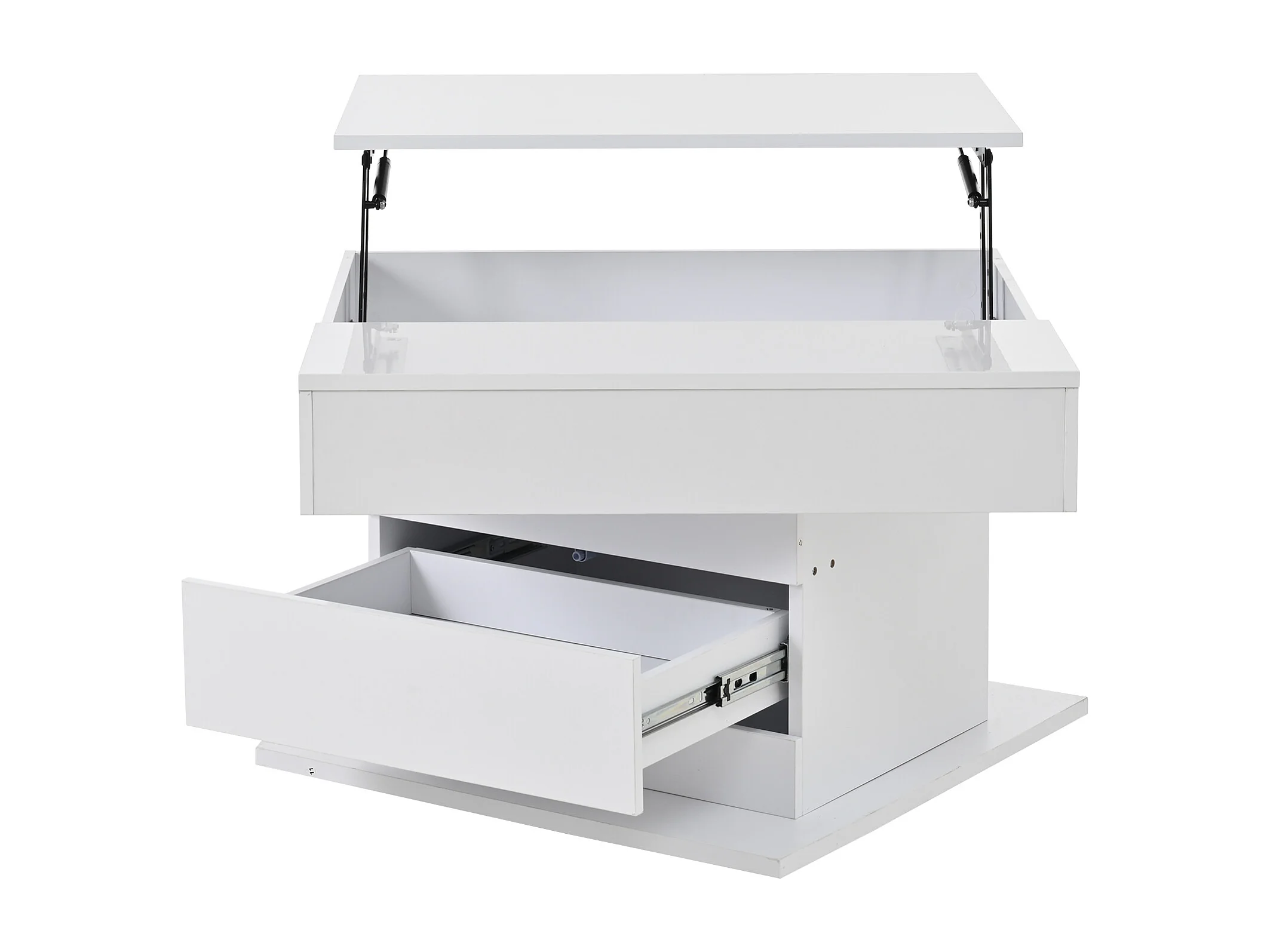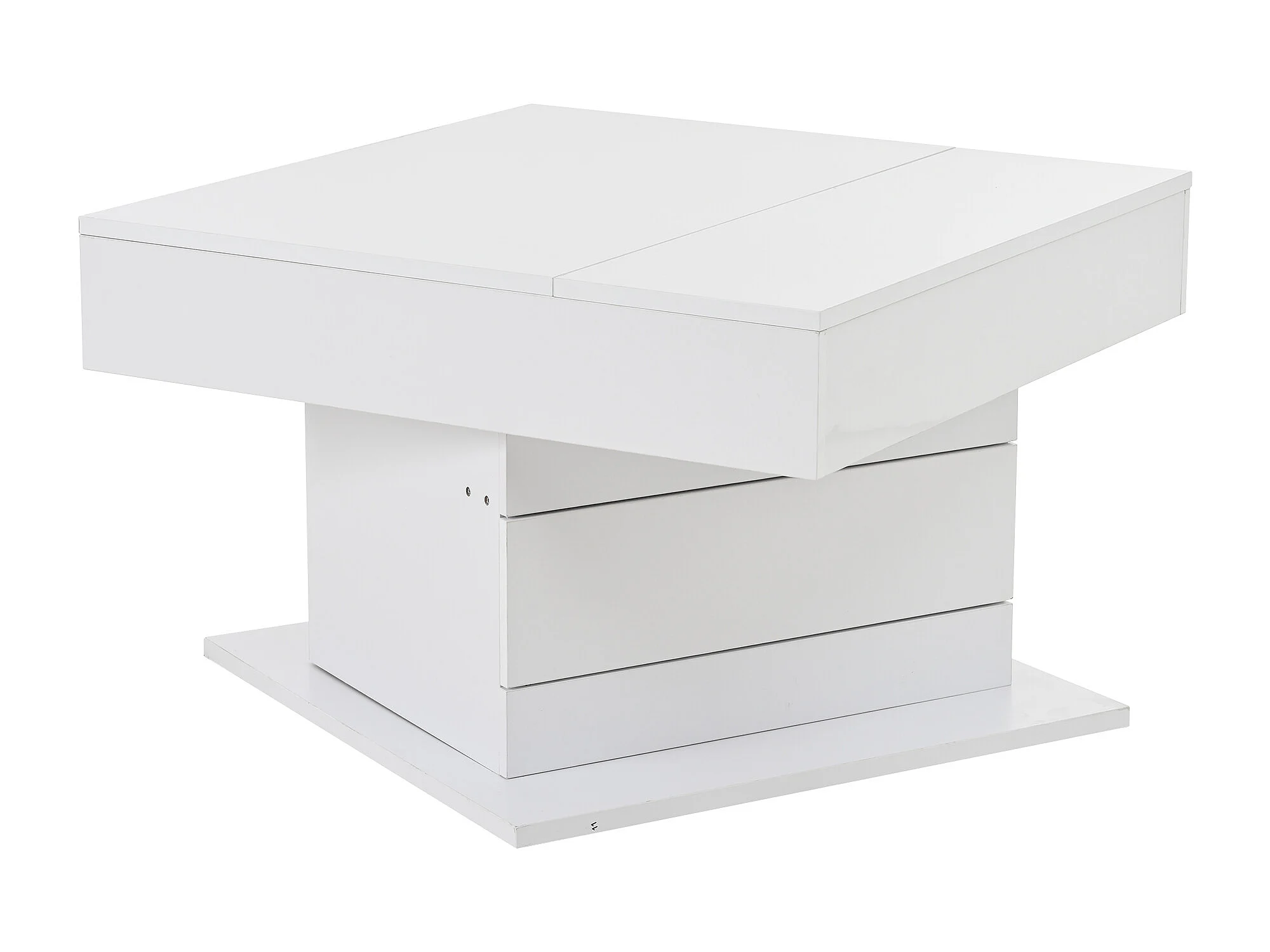 Tavolino da caffè laccato lucido con piano sollevabile e cassetto - Piano girevole - Legno PB bianco