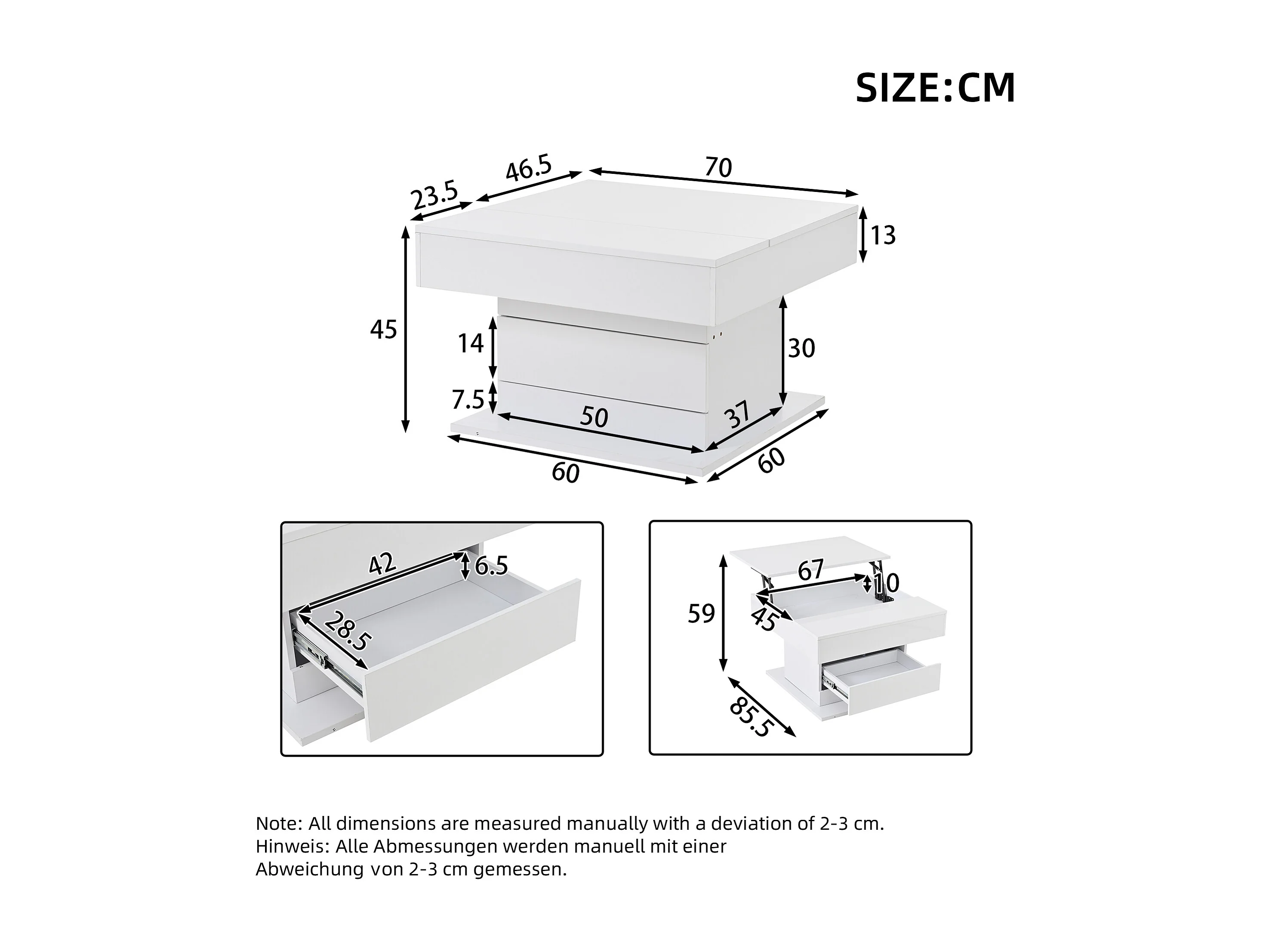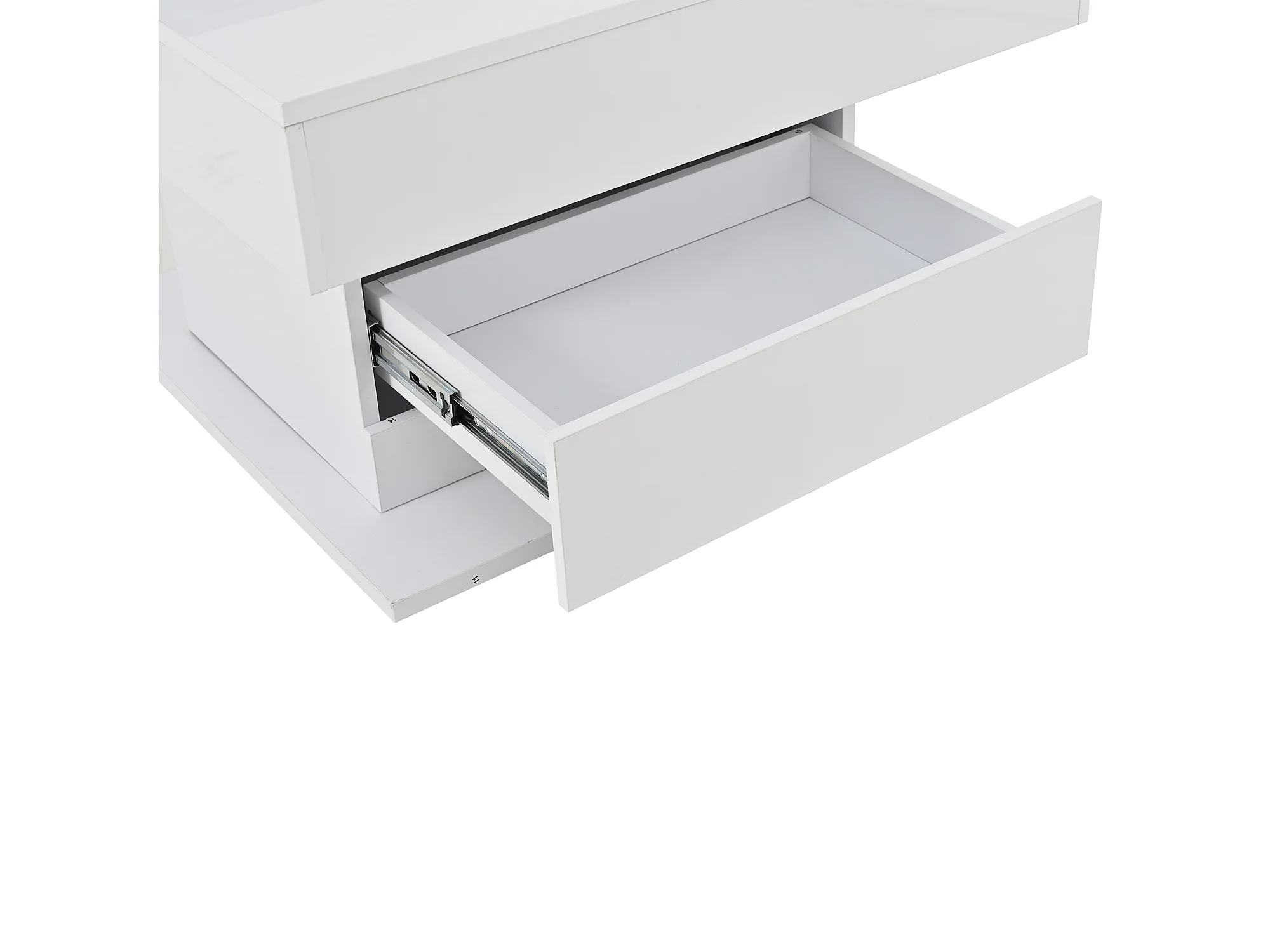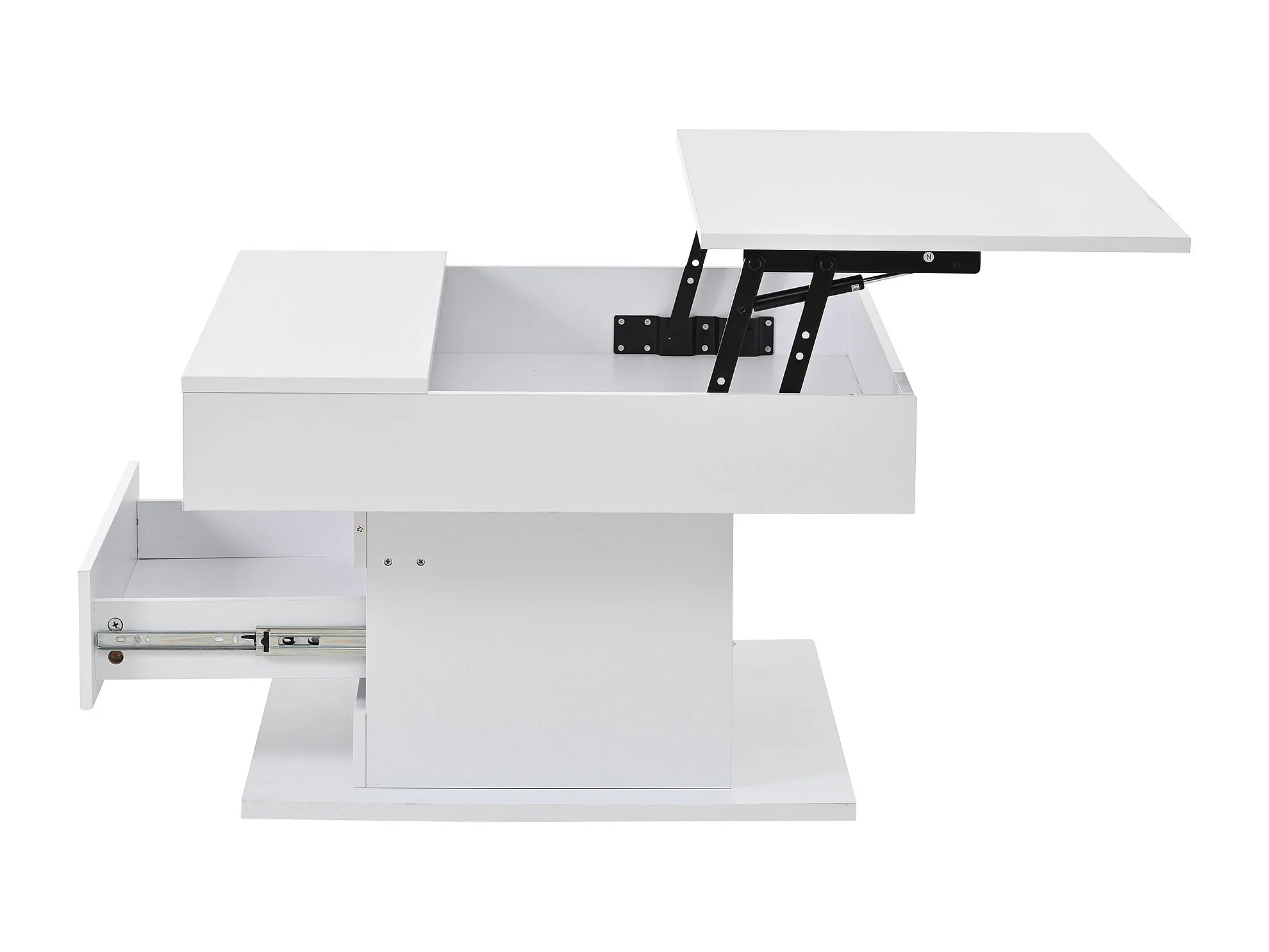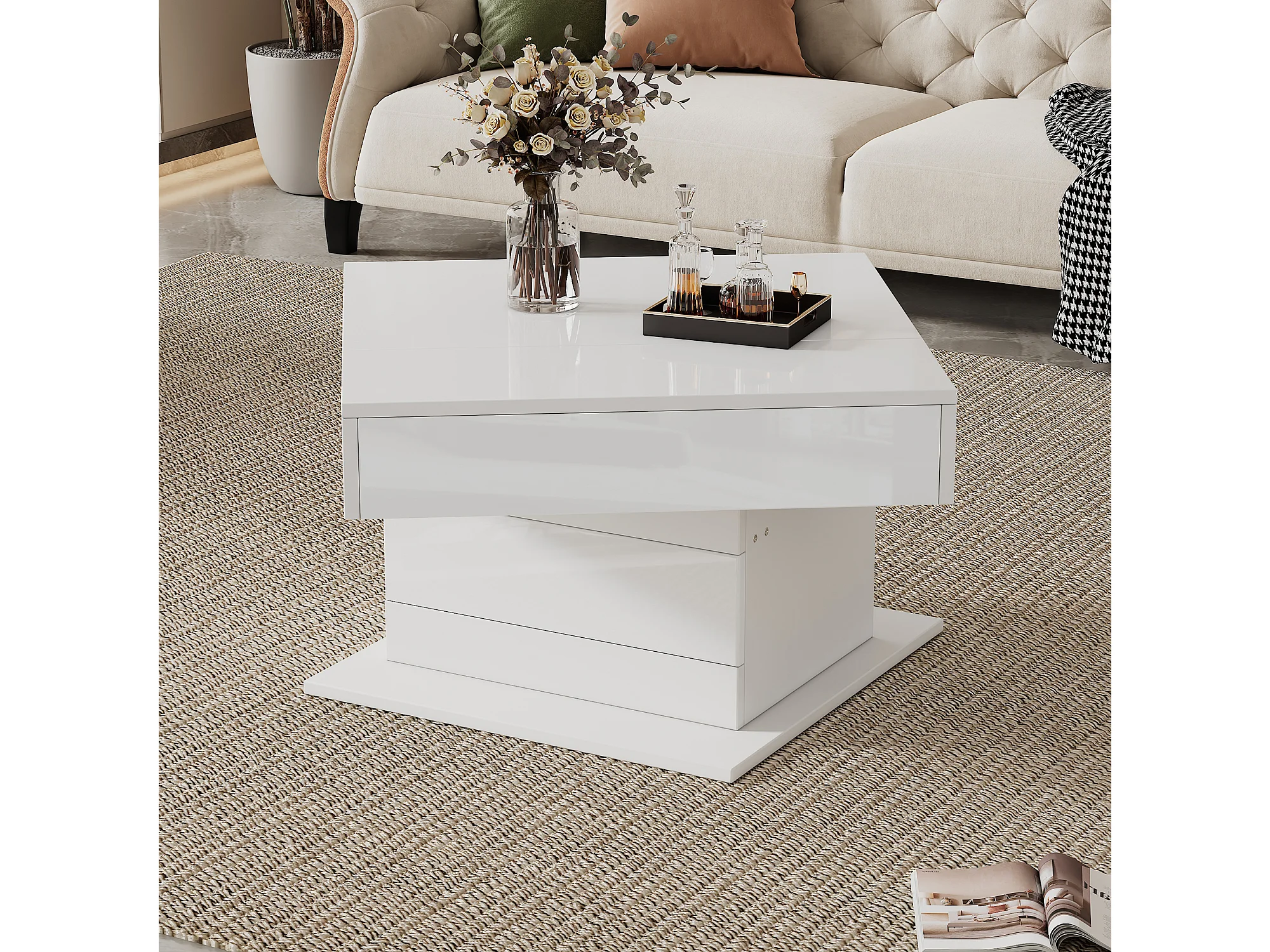 Tavolino da caffè laccato lucido con piano sollevabile e cassetto - Piano girevole - Legno PB bianco