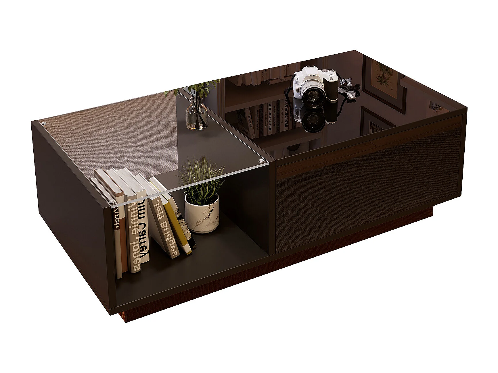 Tavolino sollevabile - 100 x 50 x 40 cm - con vano portaoggetti nascosto + LED + 1 cassetto - truciolato - nero