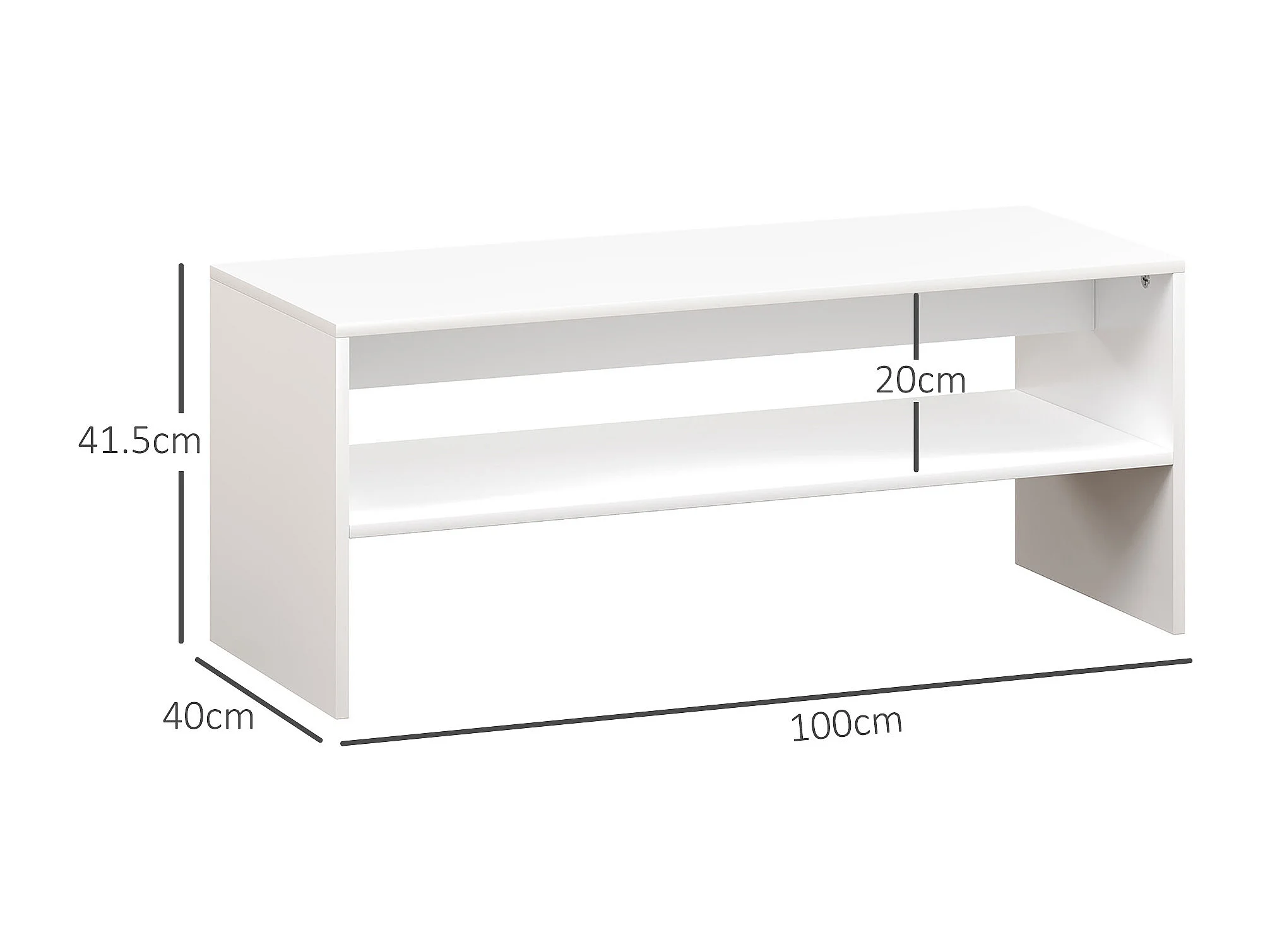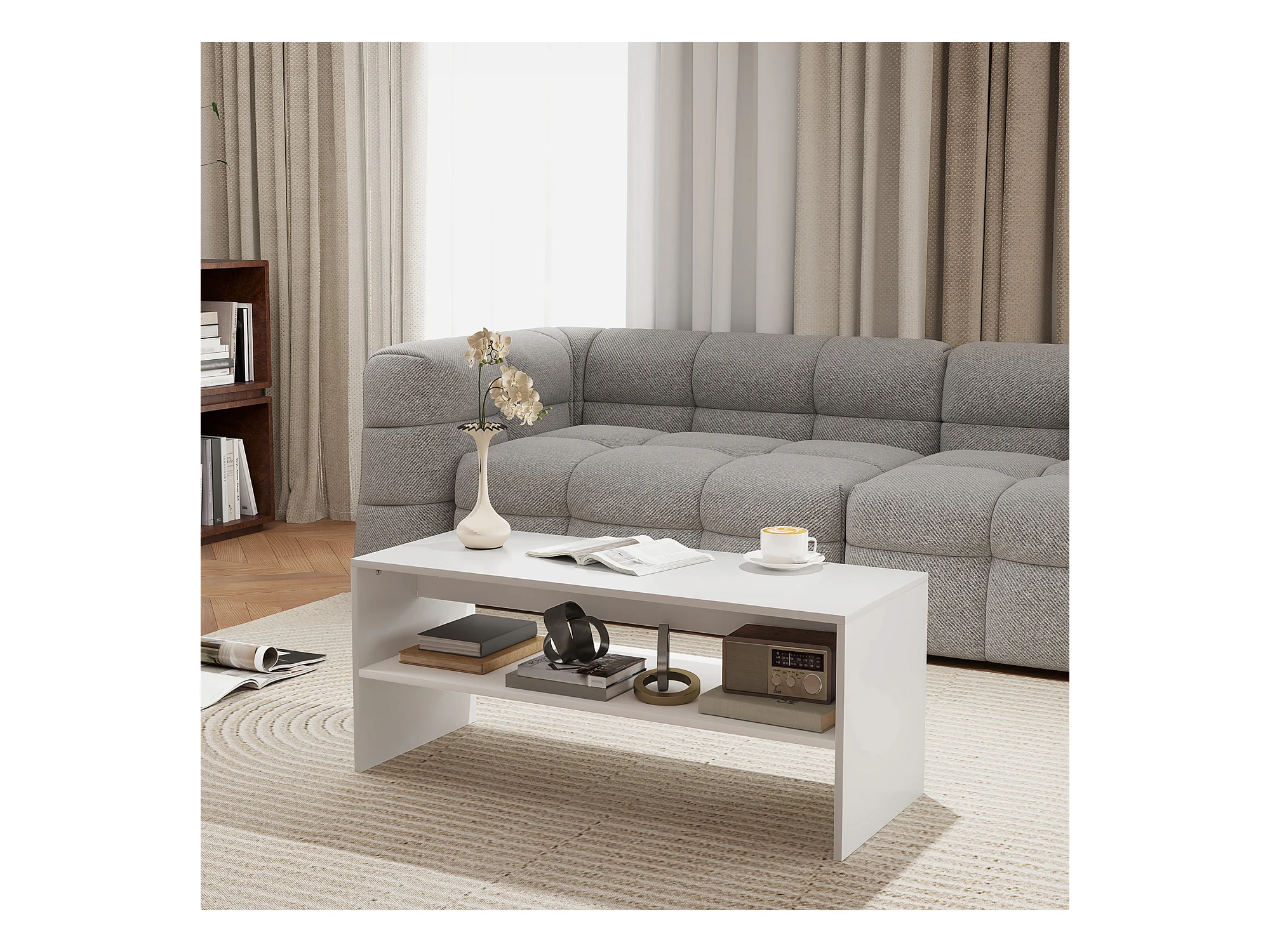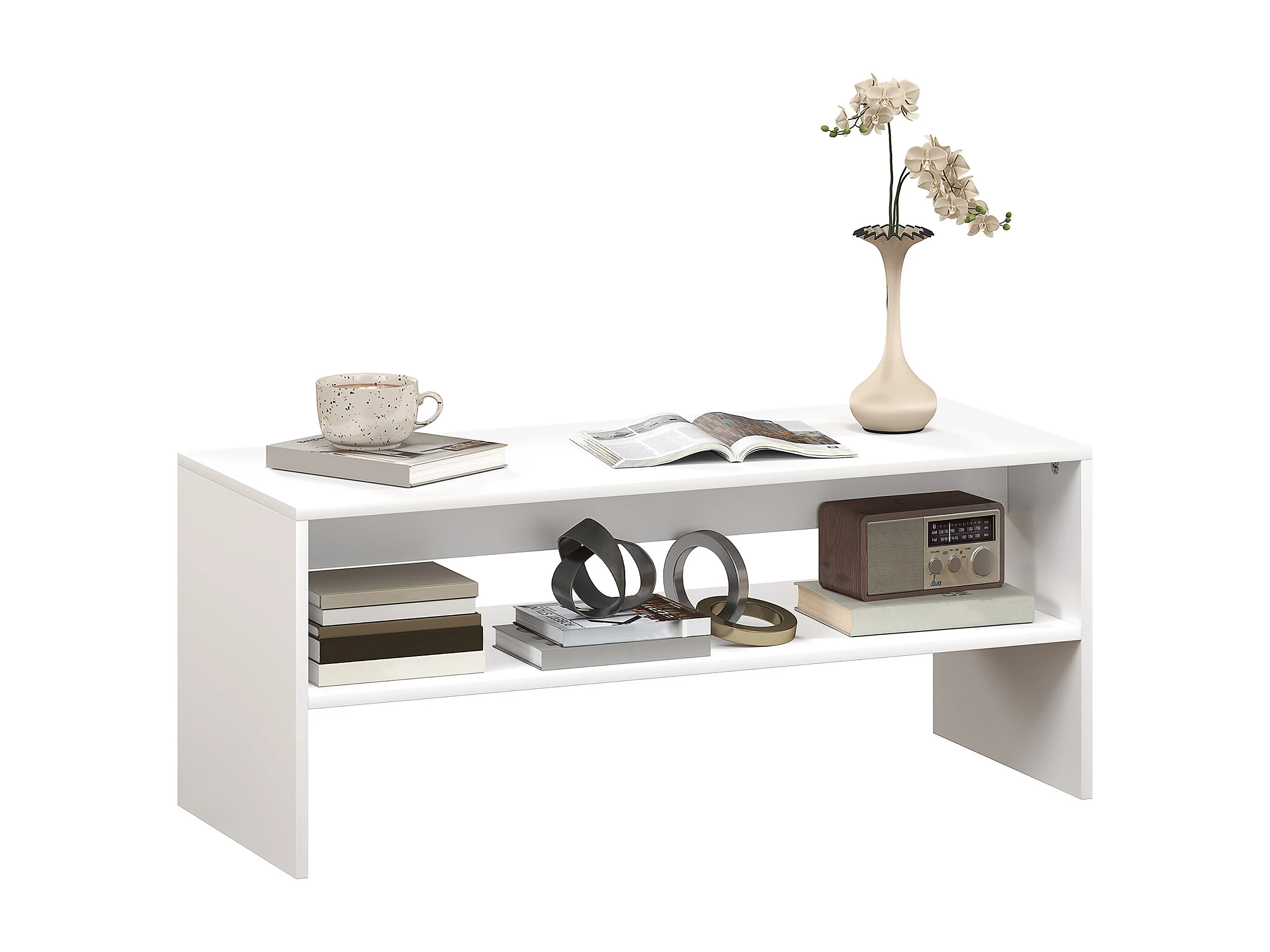 Tavolino da caffè moderno 2 livelli con ripiano aperto in legno bianco