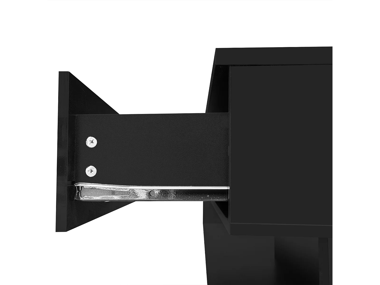 Tavolino da caffè moderno a LED, in vetro nero e legno con ampio cassetto, soggiorno, 105x55x32,5 cm