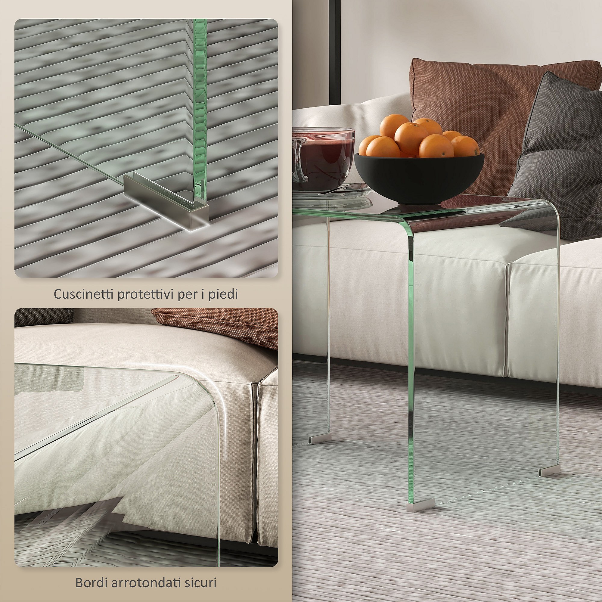 Tavolino da caffè moderno e monoblocco in vetro temperato 50x40x45 cm