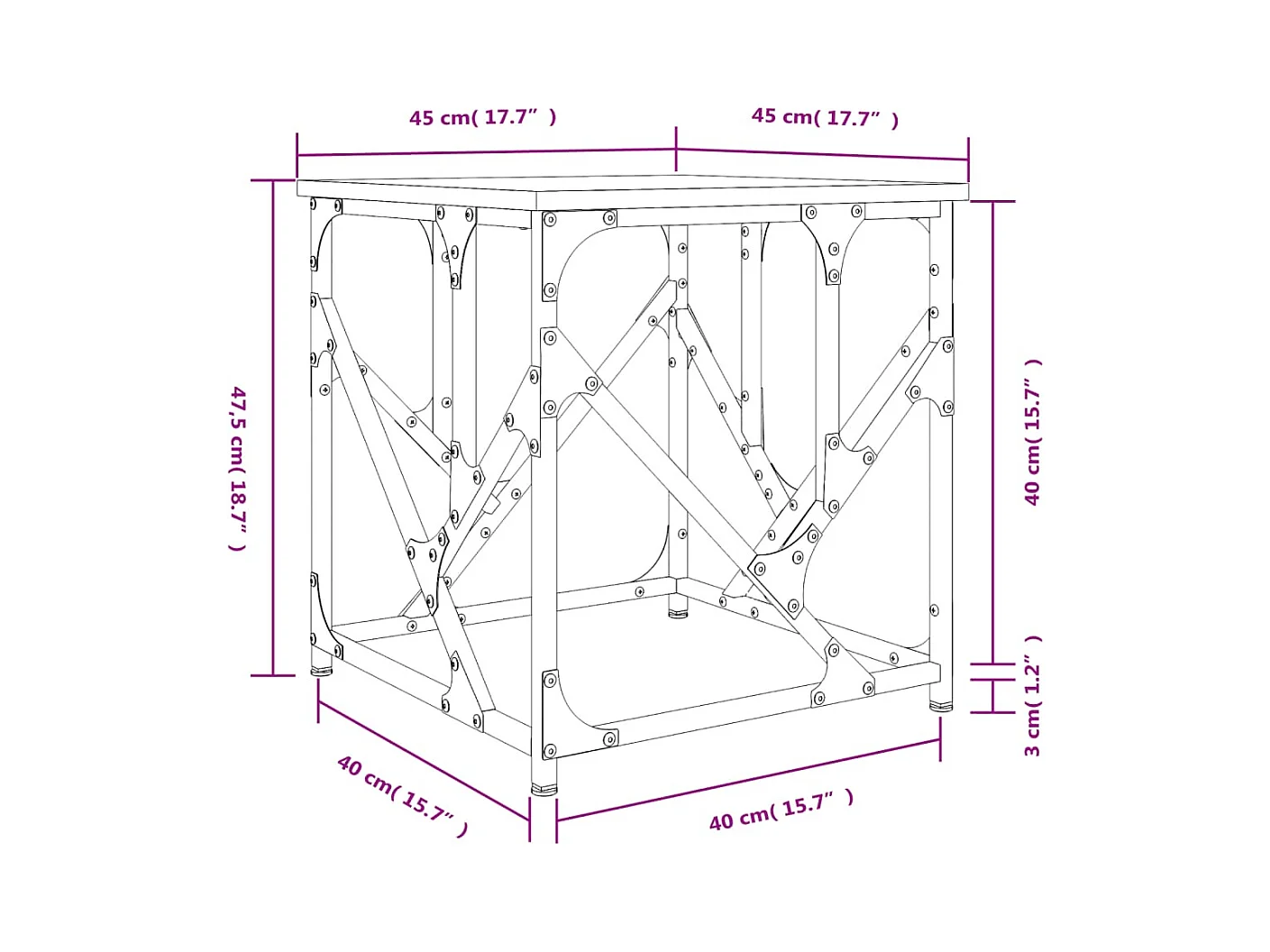Tavolino da caffè nero 45x45x47,5 cm in legno ingegnerizzato