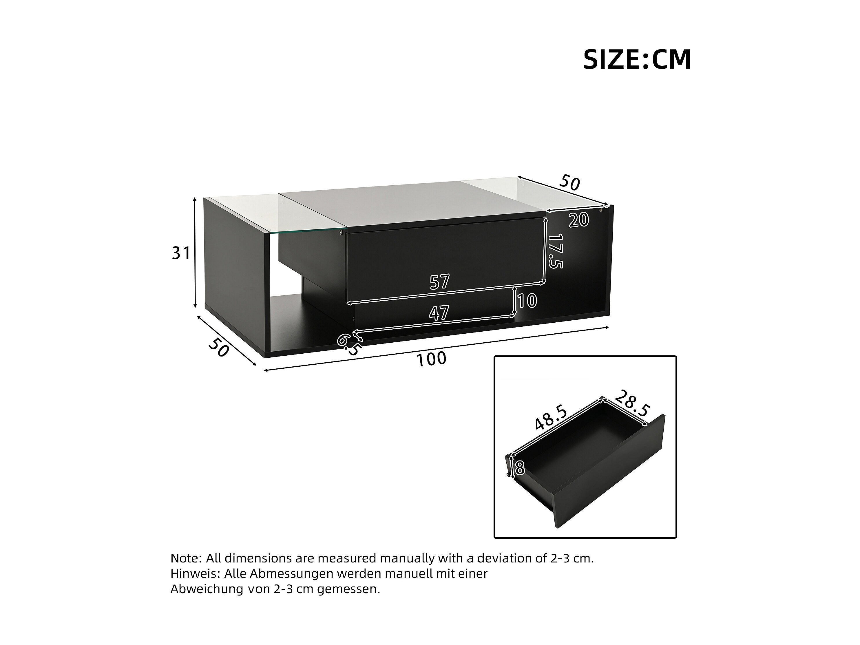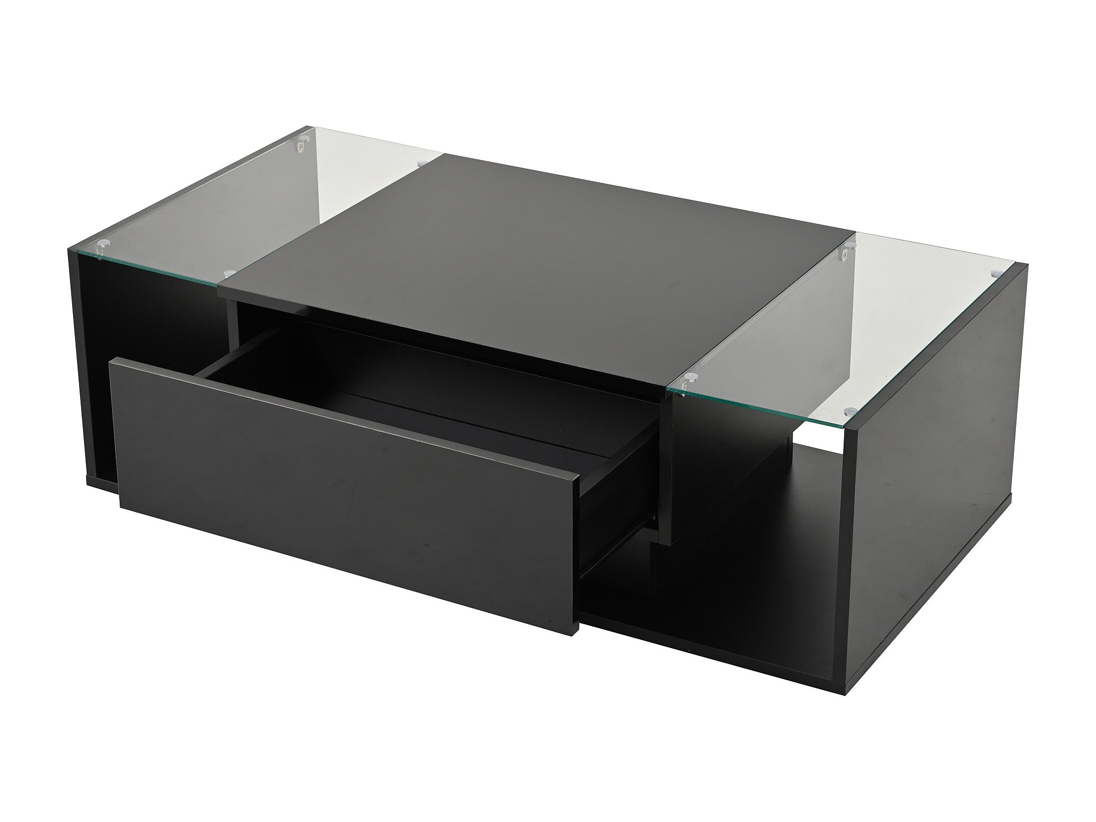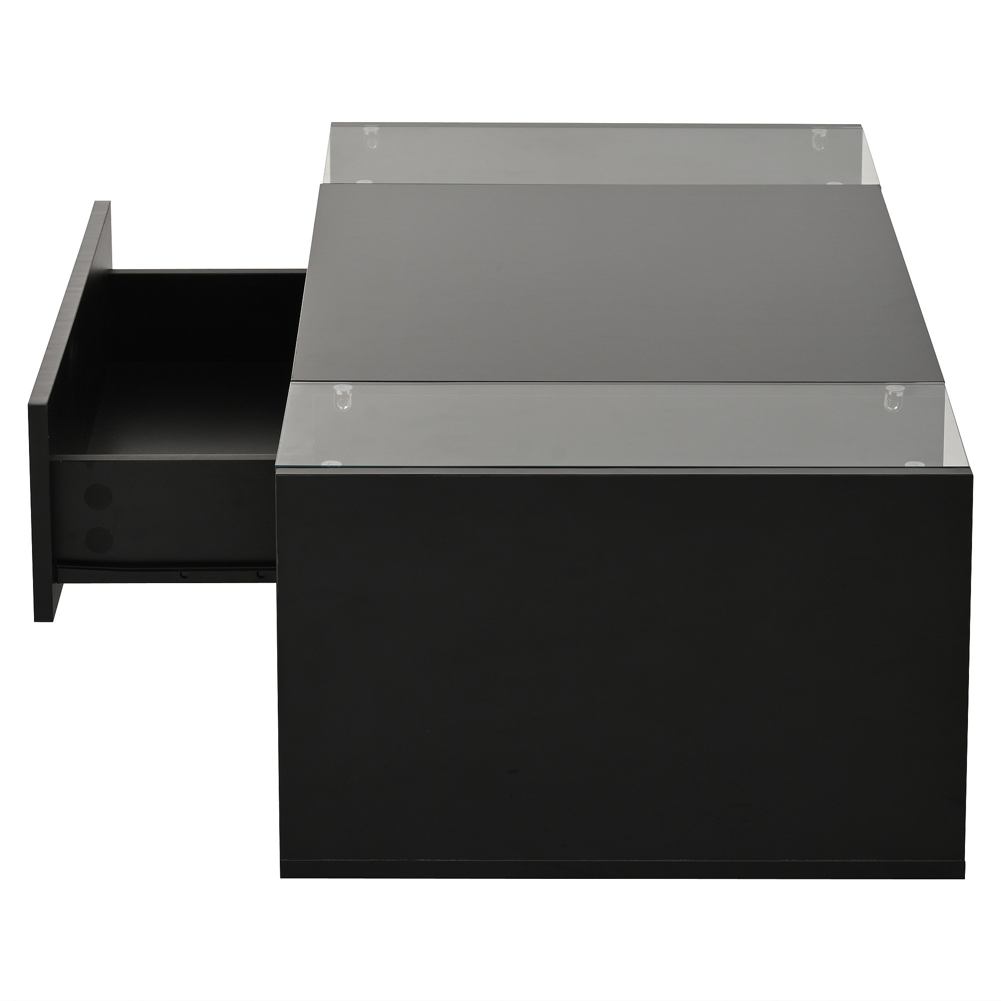 Tavolino da caffè nero con 1 cassetto portaoggetti, ripiano aperto e illuminazione LED - per soggiorno