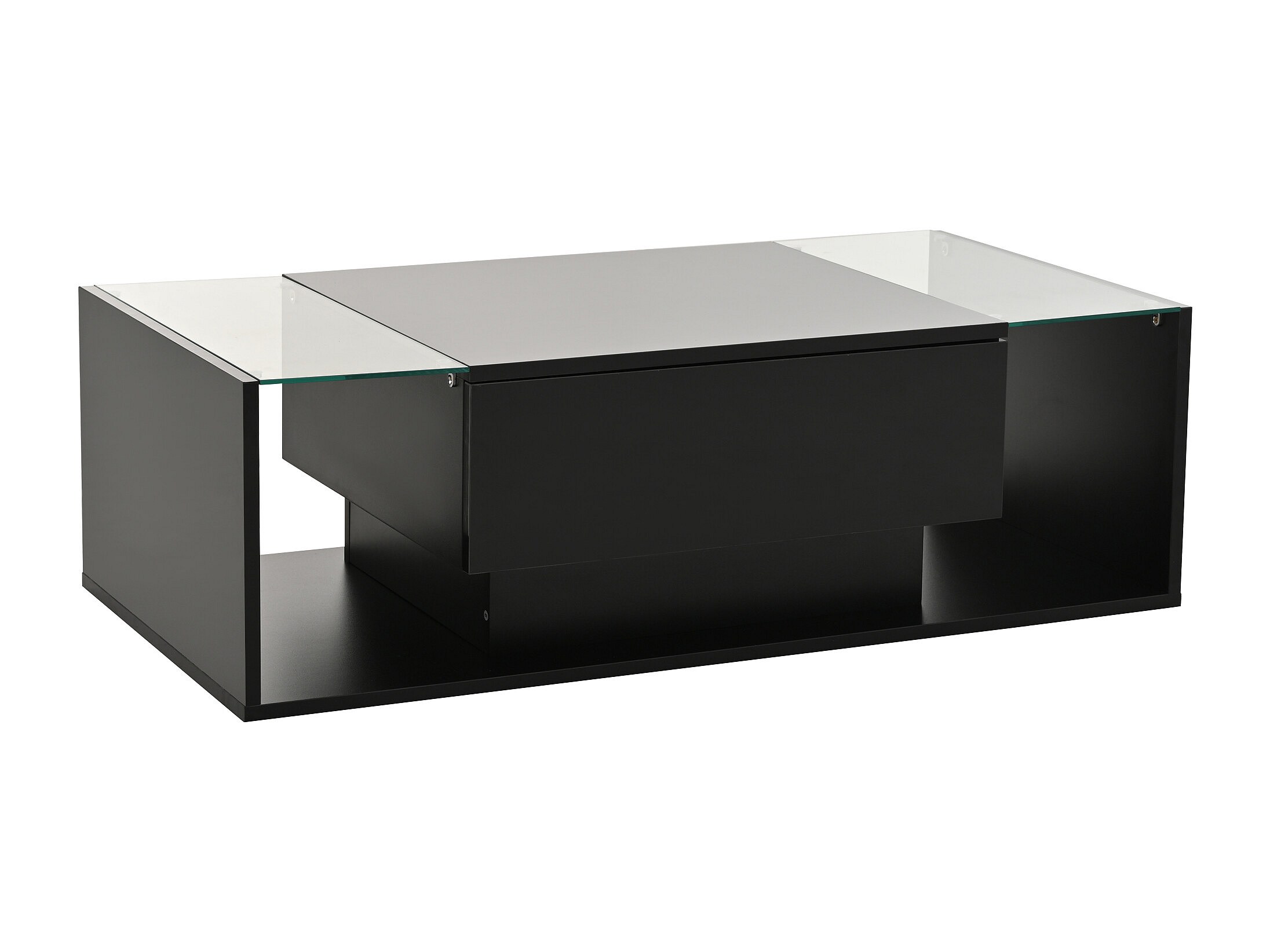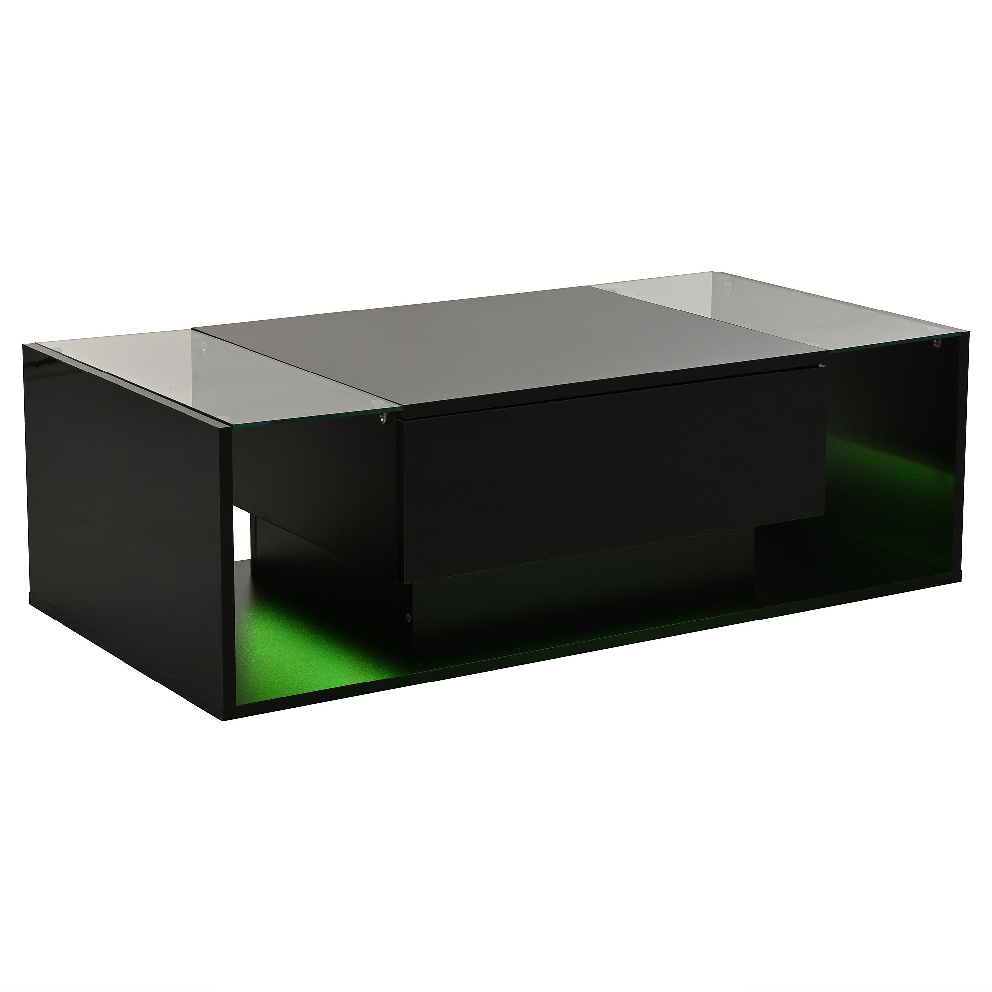 Tavolino da caffè nero con cassetto e illuminazione a LED, tavolino laterale in vetro temperato 100x50x31cm