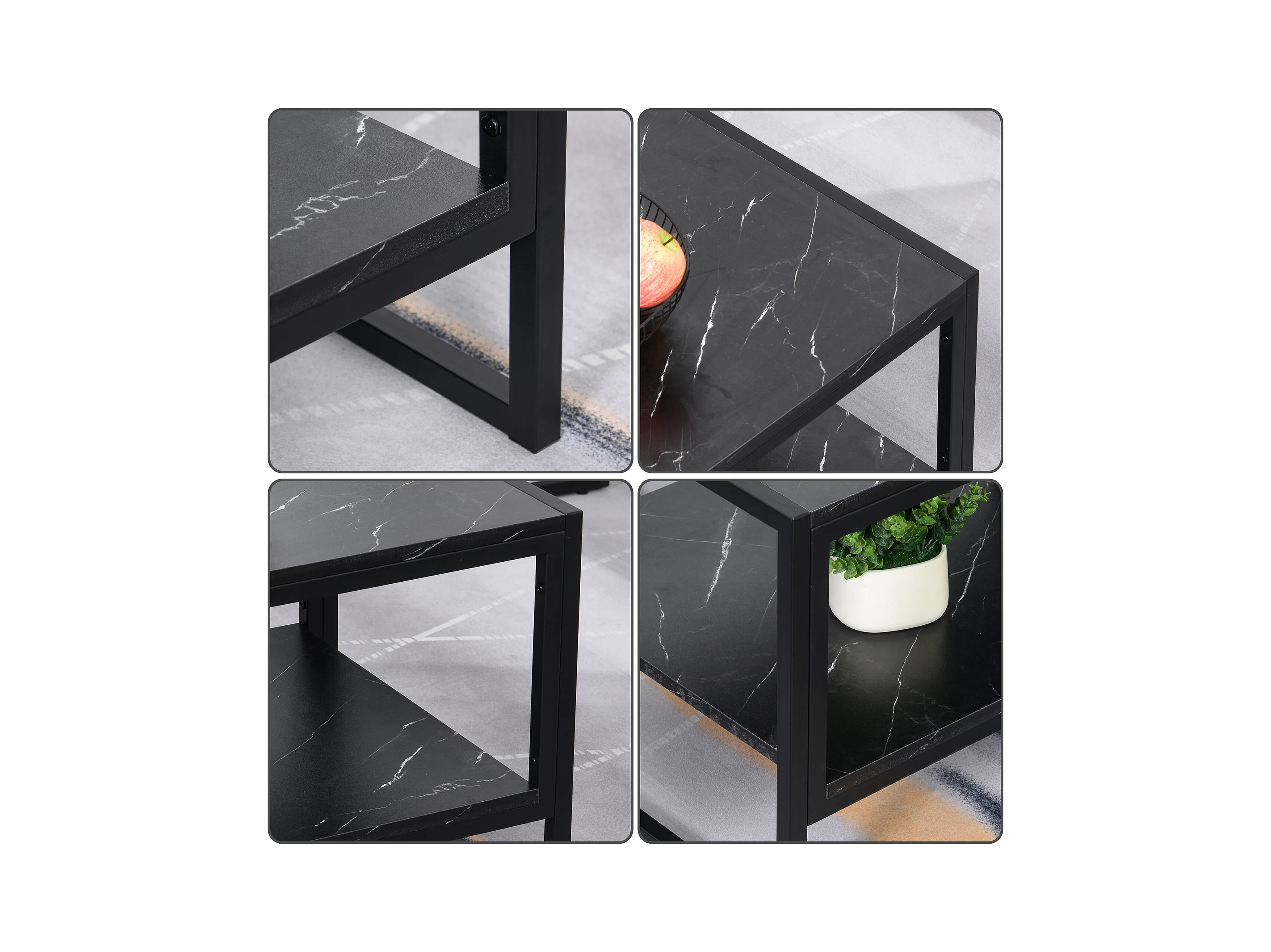 Tavolino da caffè nero effetto marmo con ripiano