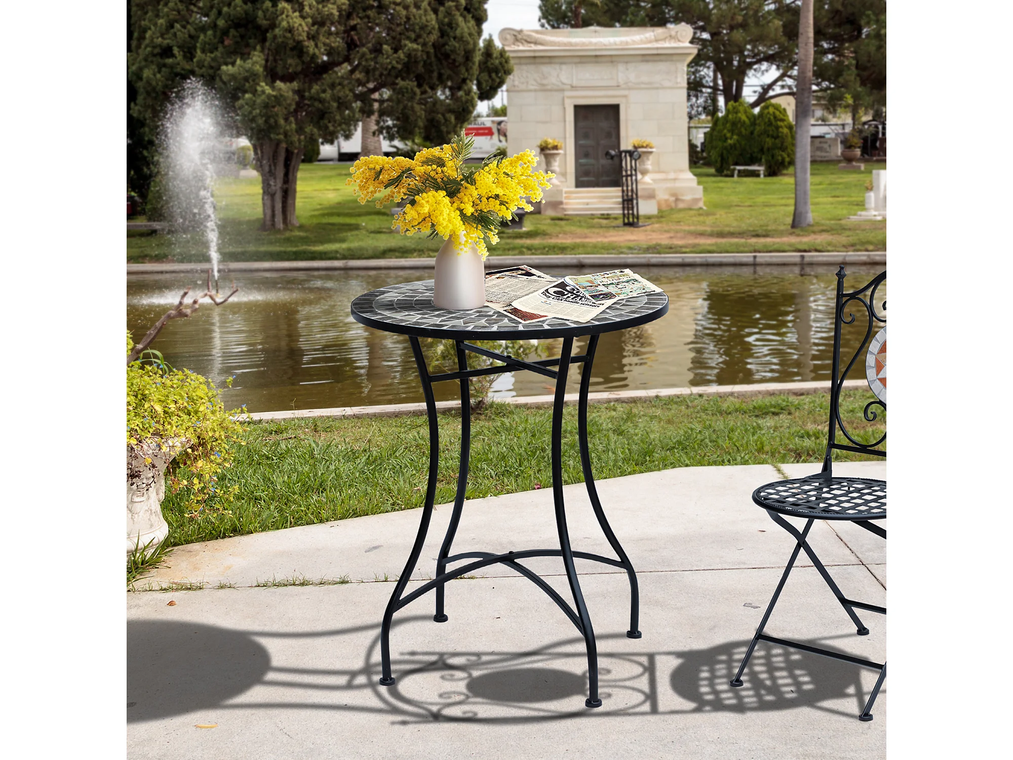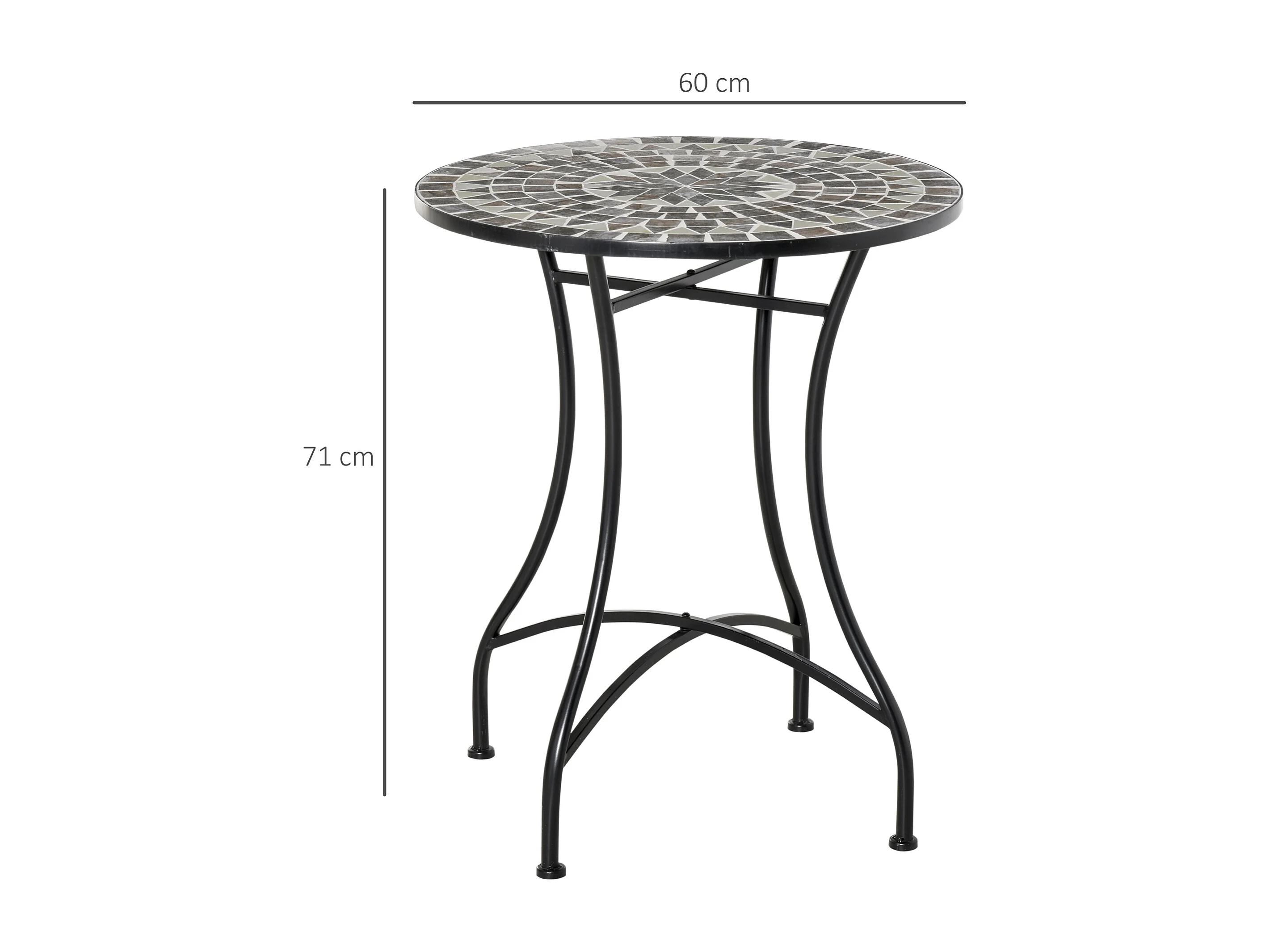 Tavolino da Caffè per Esterni con Piano in Ceramica Mosaico e Struttura in Metallo