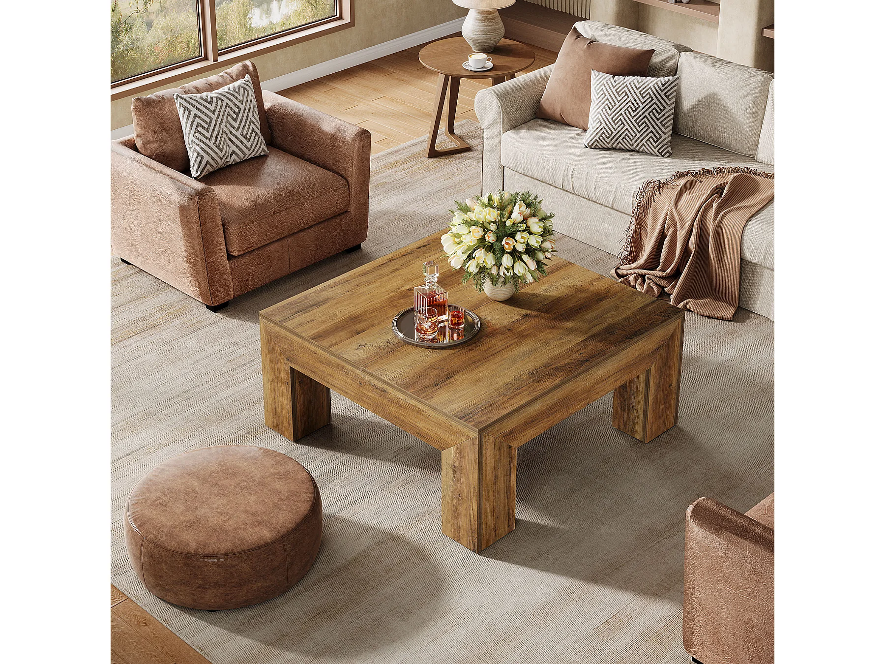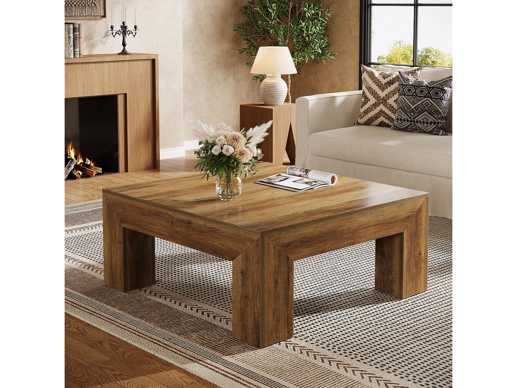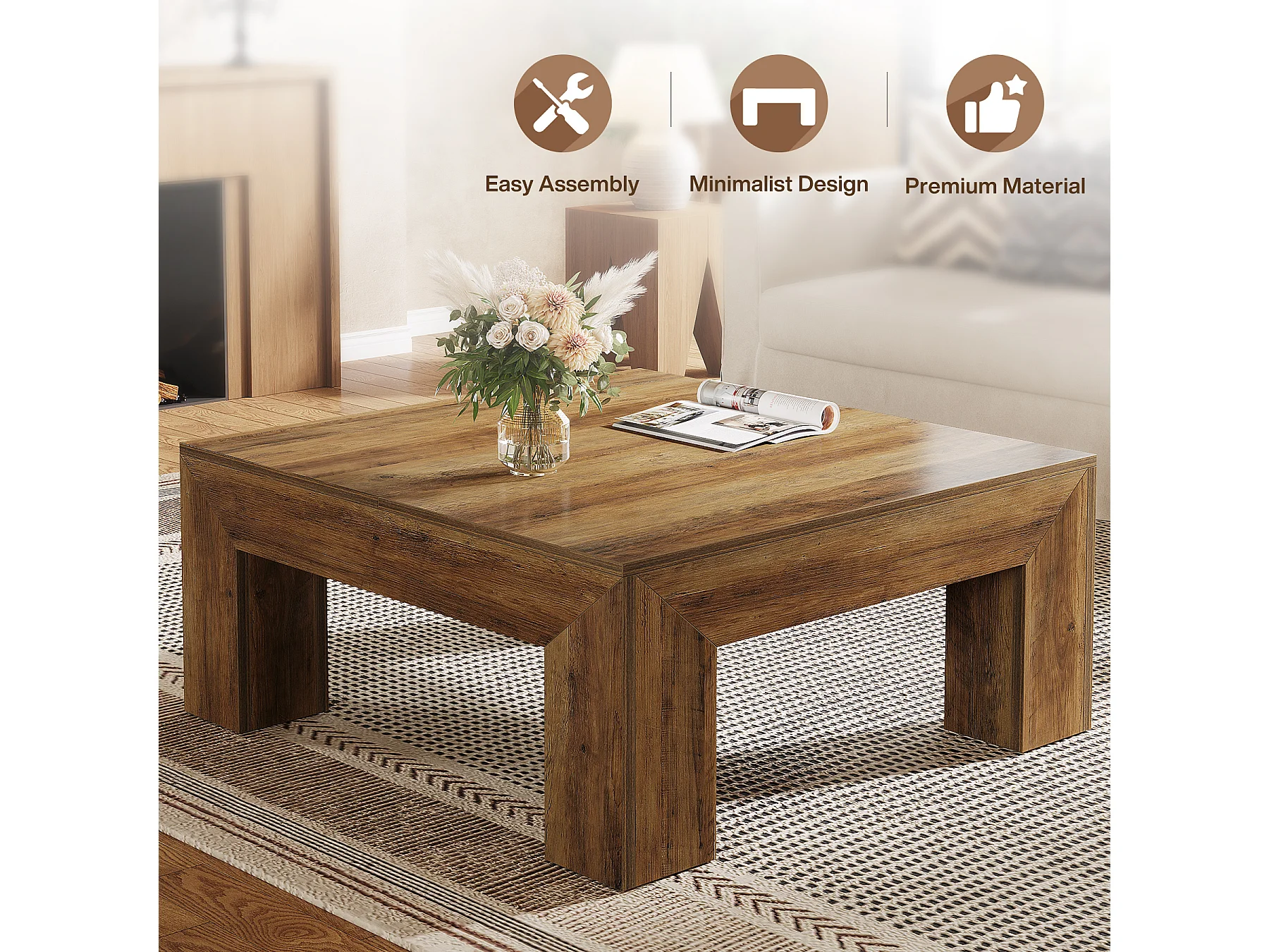 Tavolino da caffè quadrato per soggiorno, tavolino da tè basso e grande centrale, marrone rustico
