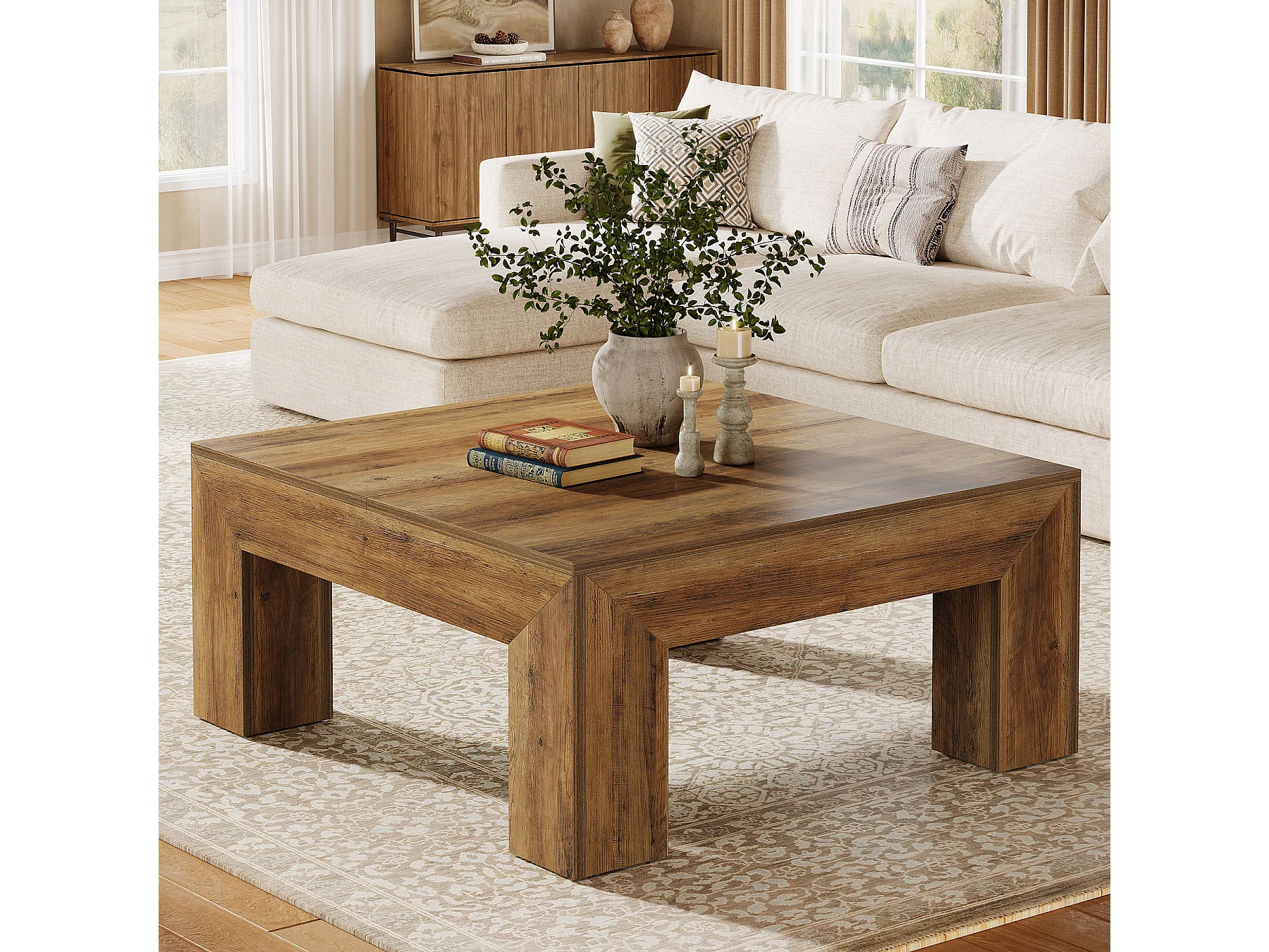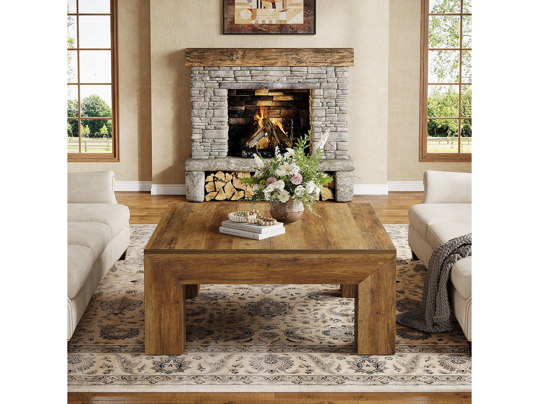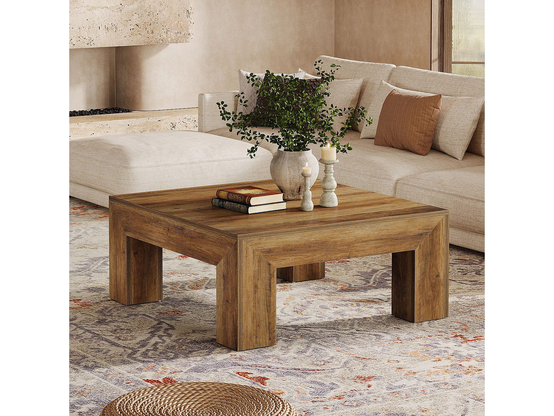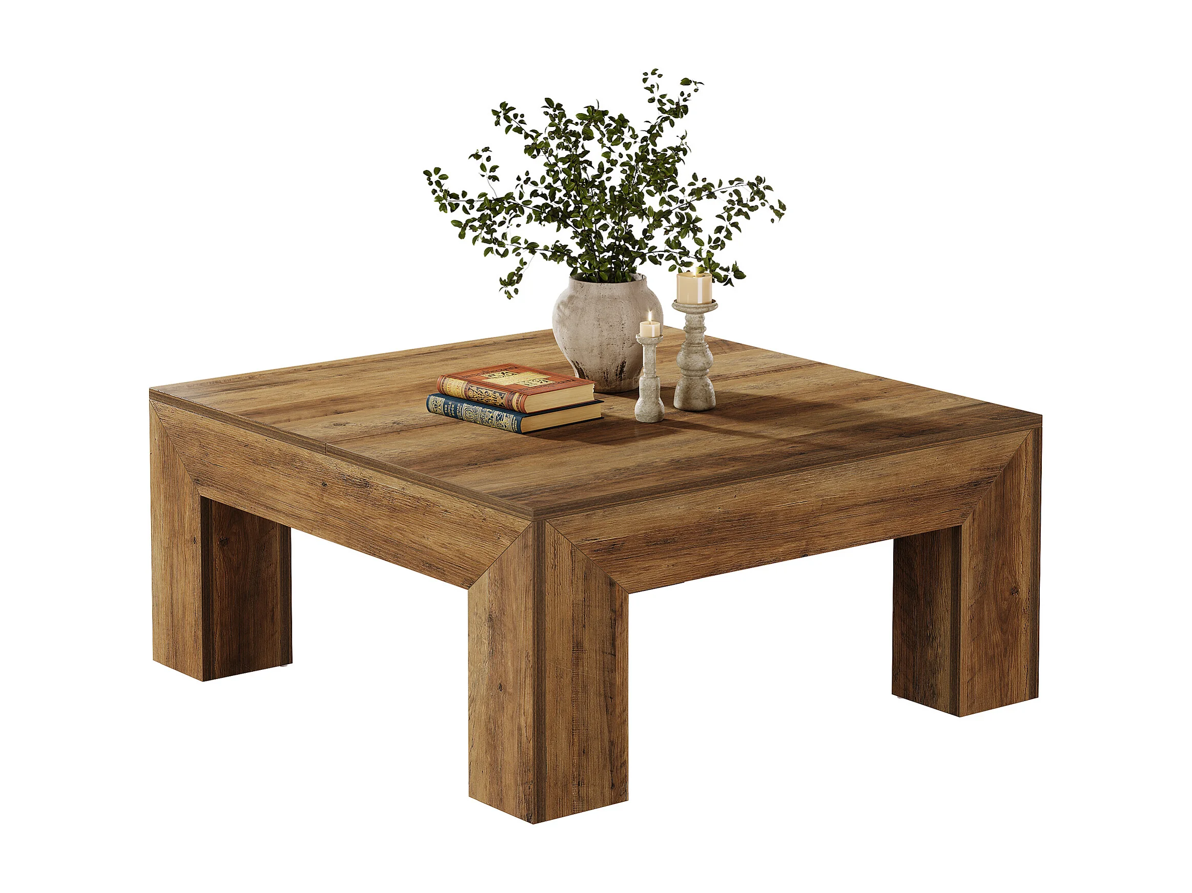 Tavolino da caffè quadrato per soggiorno, tavolino da tè basso e grande centrale, marrone rustico