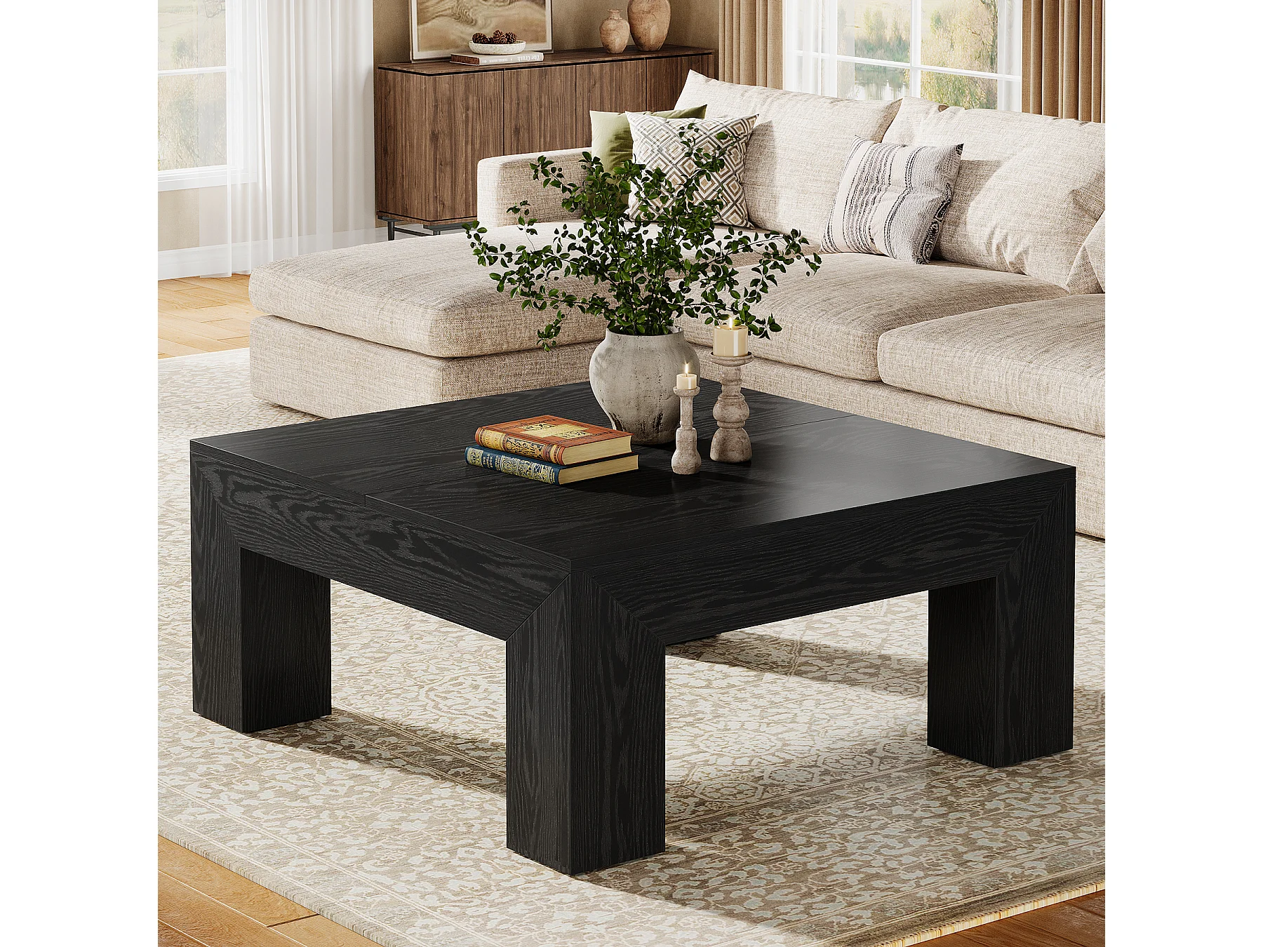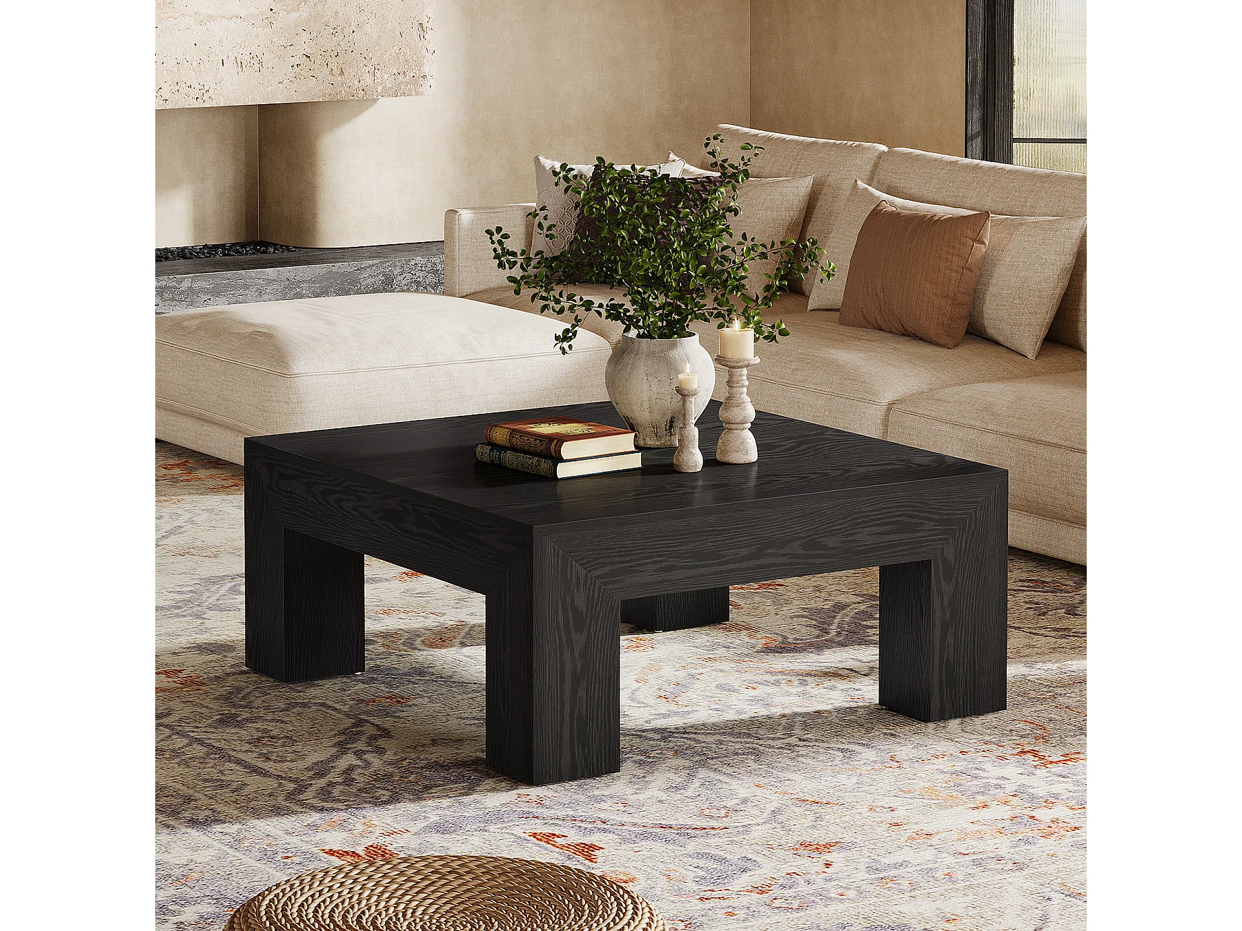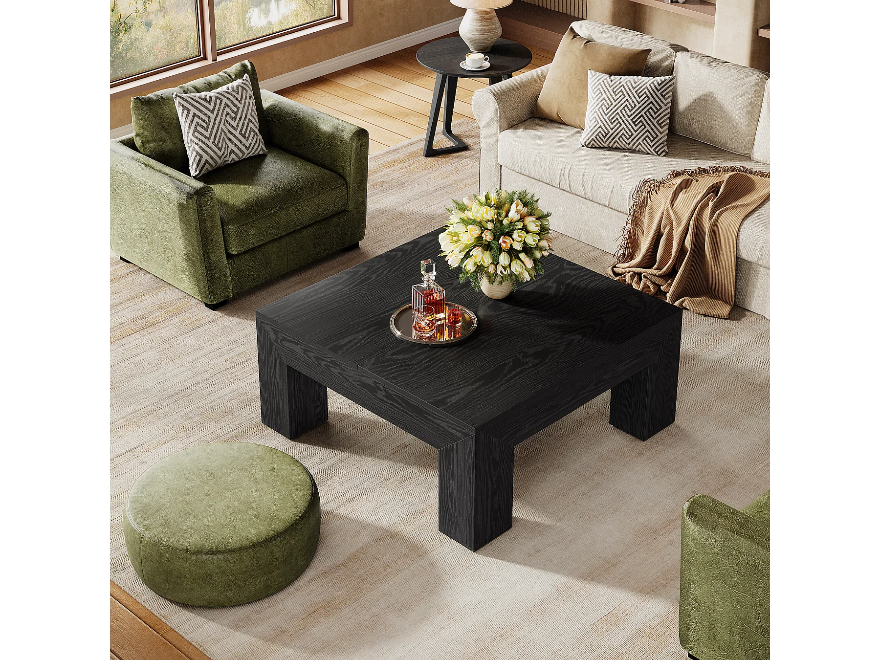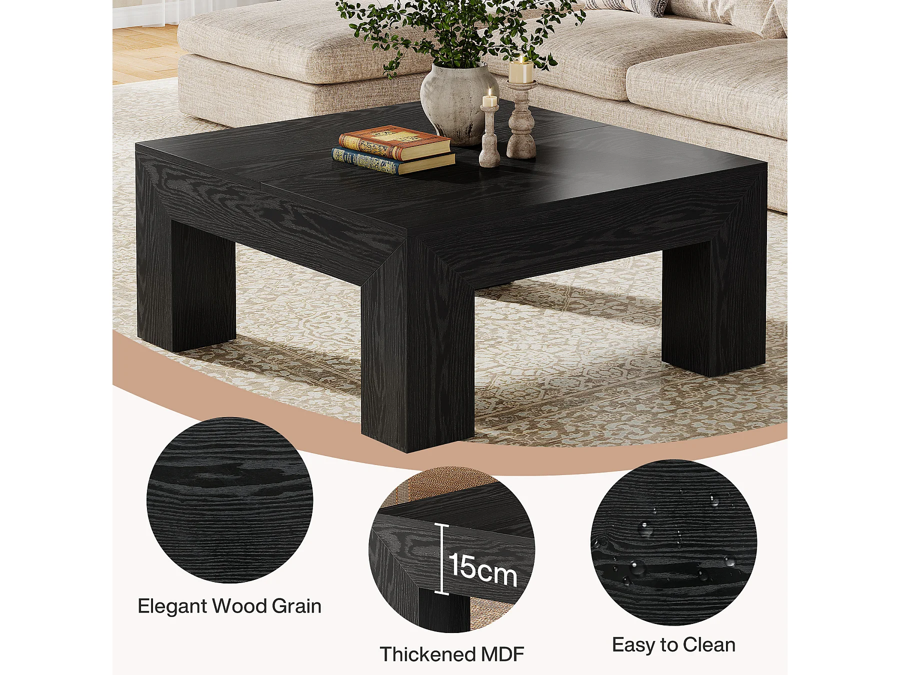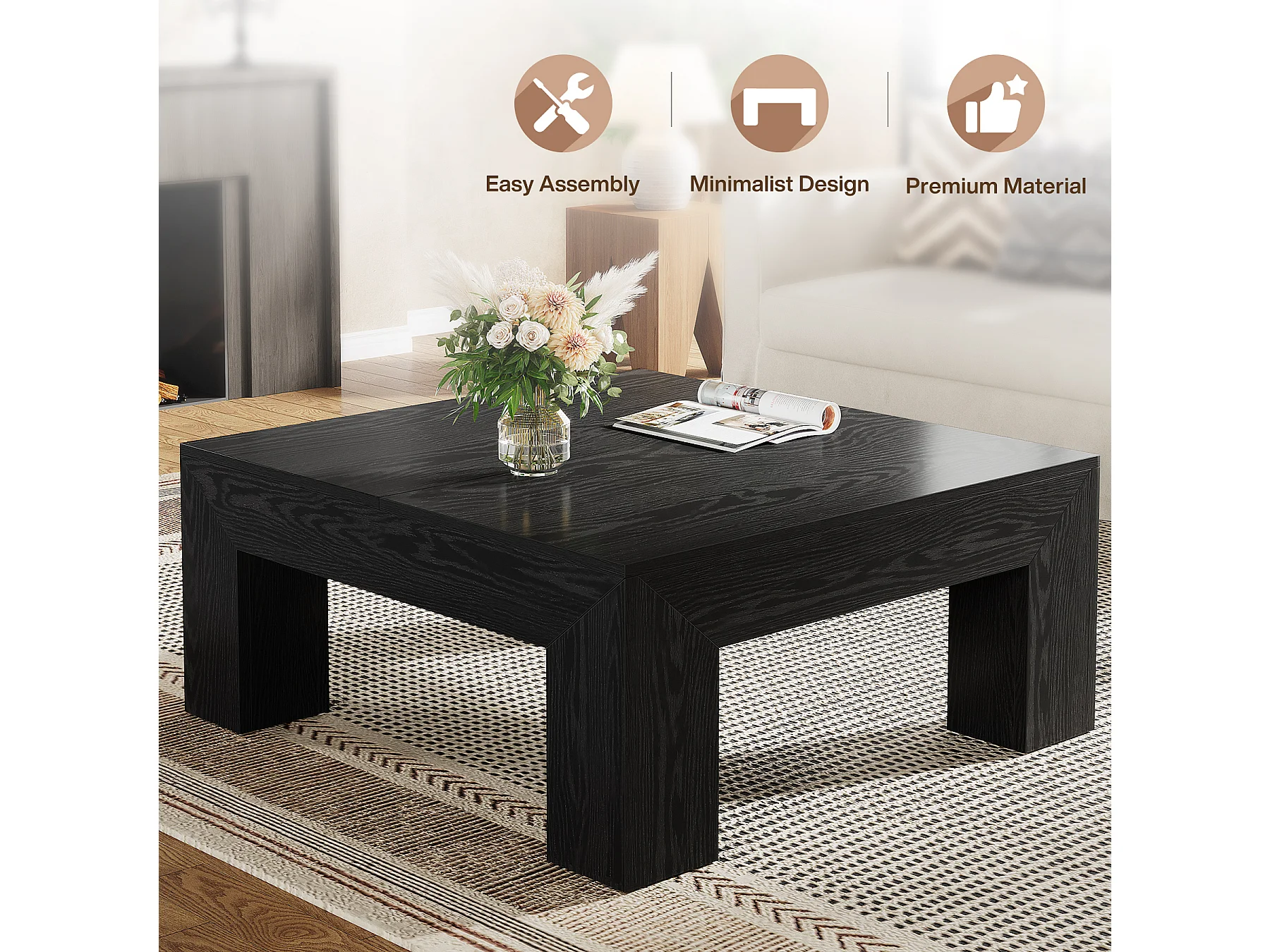 Tavolino da caffè quadrato per soggiorno, tavolino da tè basso e grande centrale nero