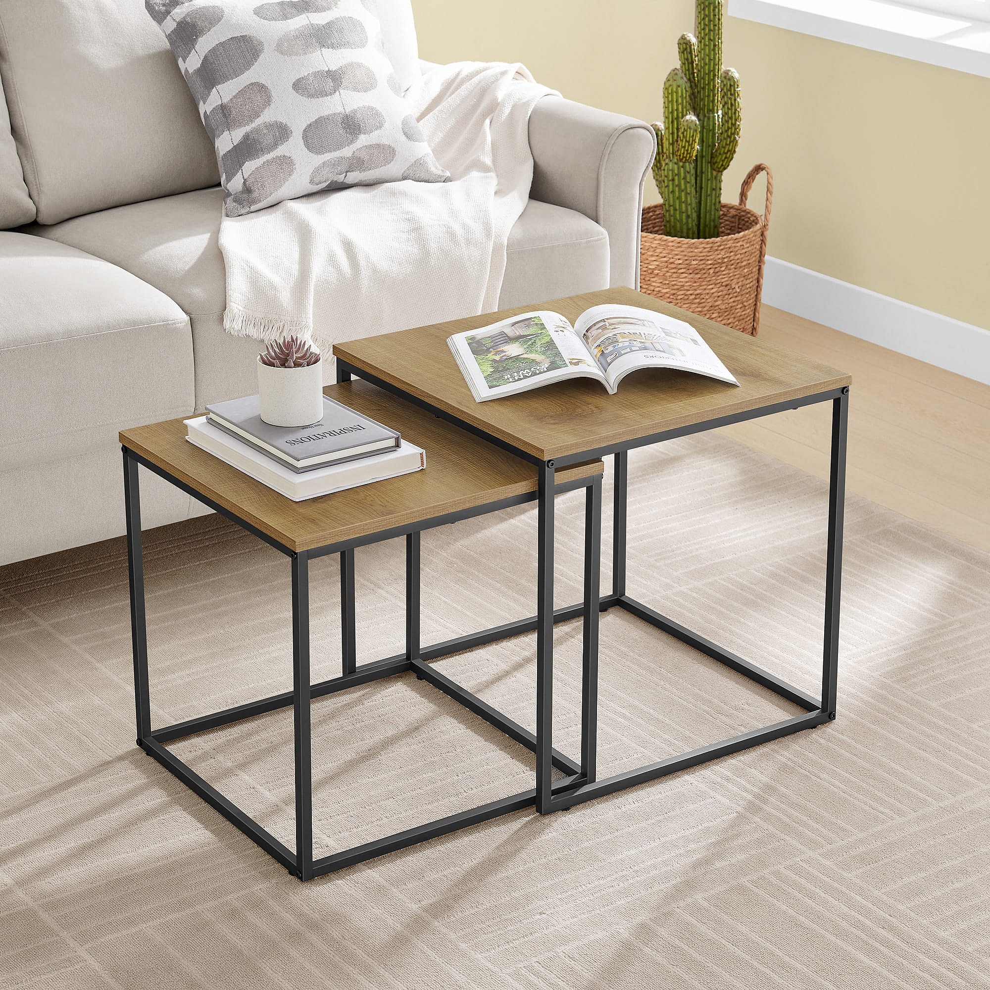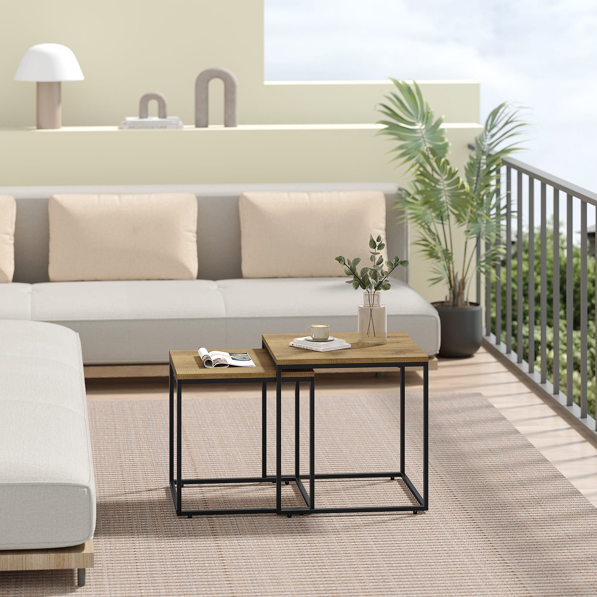 Tavolini da caffè quadrati Valora, set da 2 – piano in rovere Sonoma con gambe nere