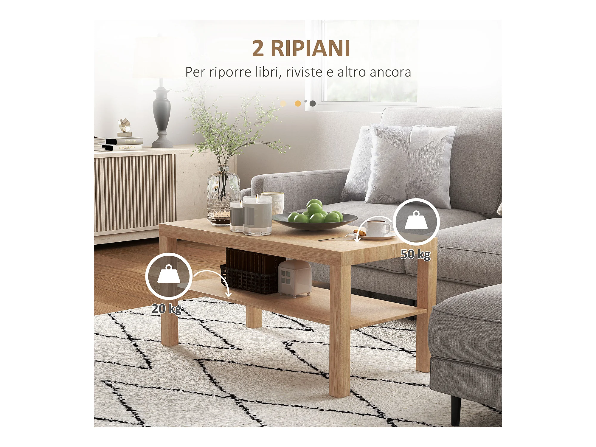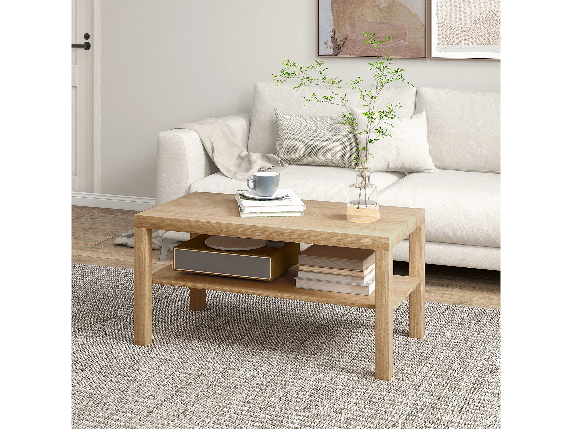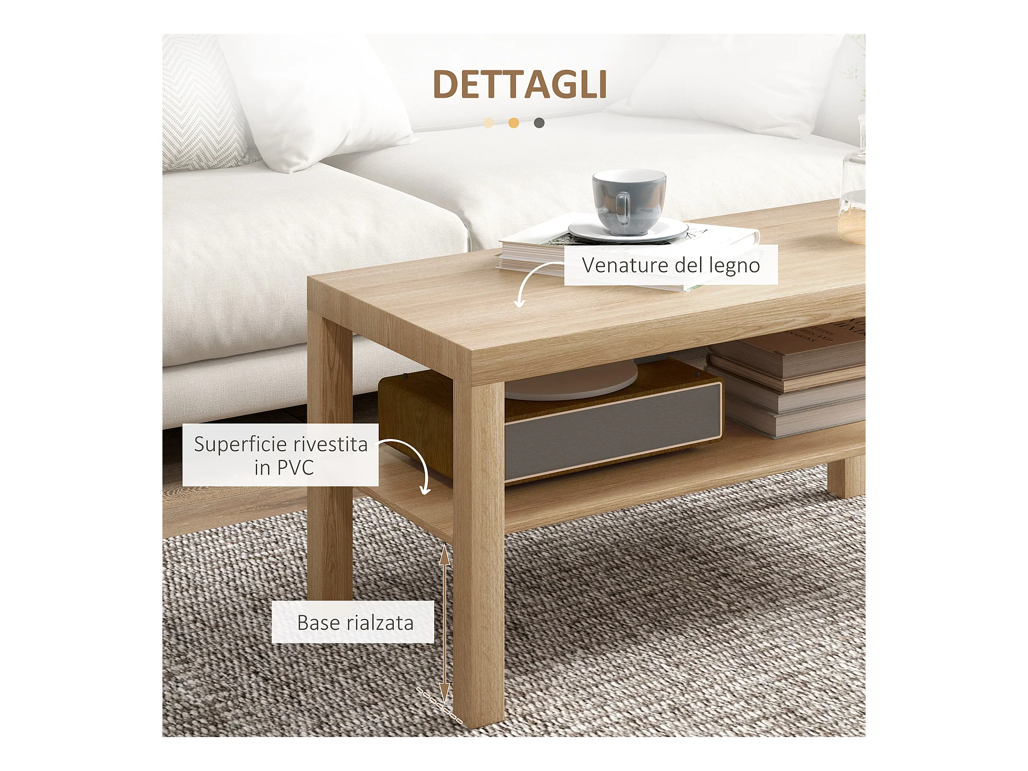 Tavolino da caffè rettangolare con ripiano legno naturale