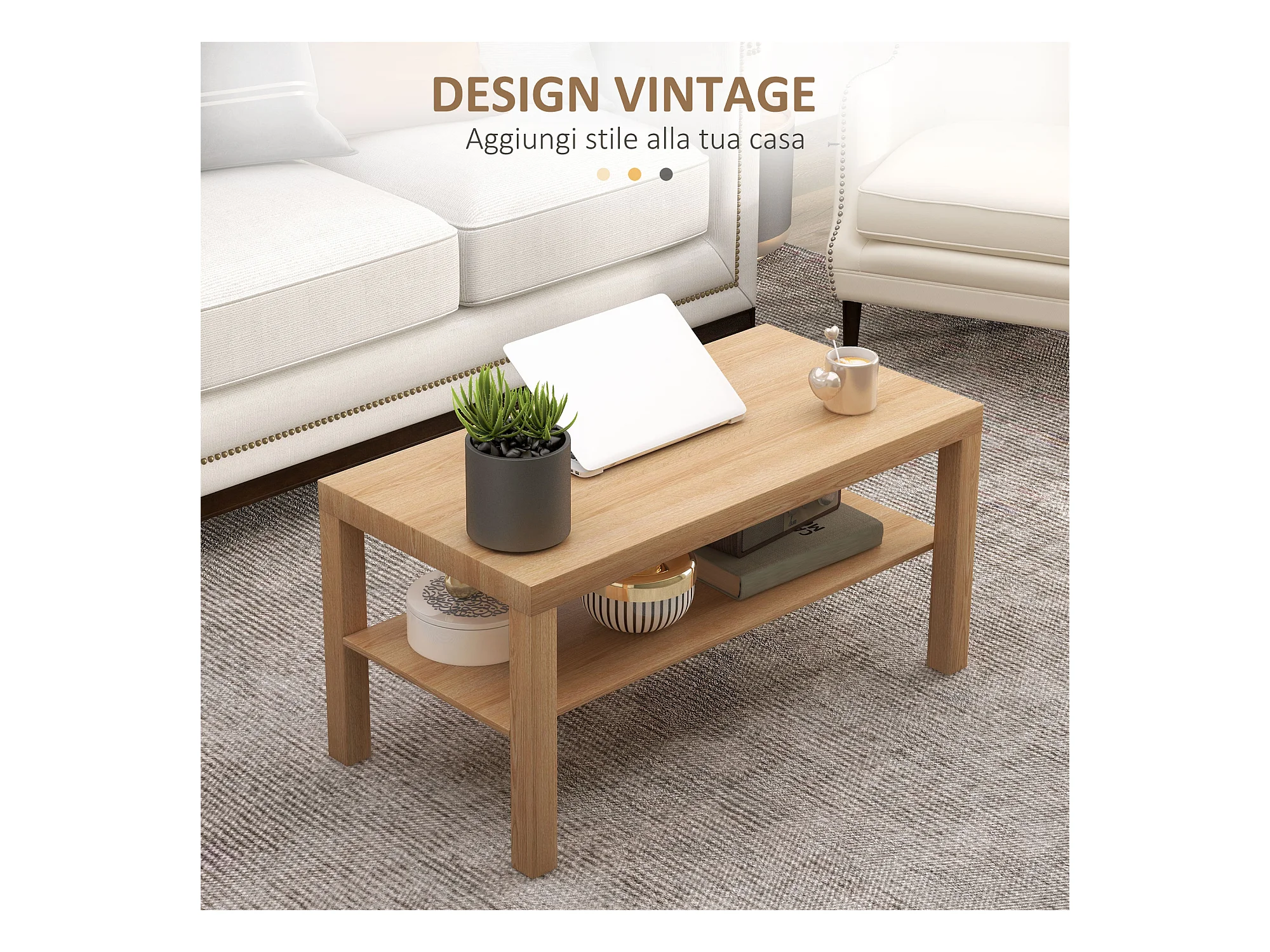 Tavolino da salotto in stile boho con 2 ripiani in mdf color legno