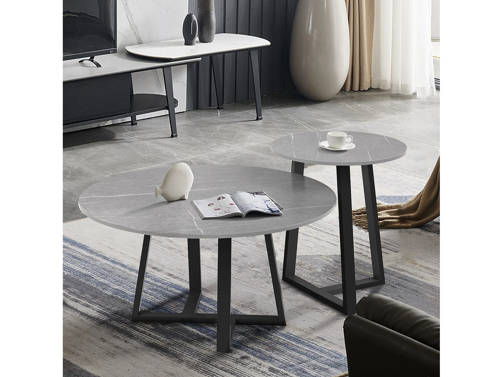 Tavolino da caffè rotondo in marmo per salotto in pietra sinterizzata set da 2 design marmo 80x80x40cm / 45x45x50cm