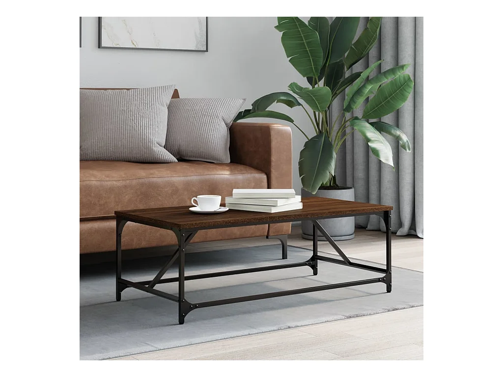 Tavolino da caffè in rovere marrone 100x50x35cm in legno ingegnerizzato e metallo