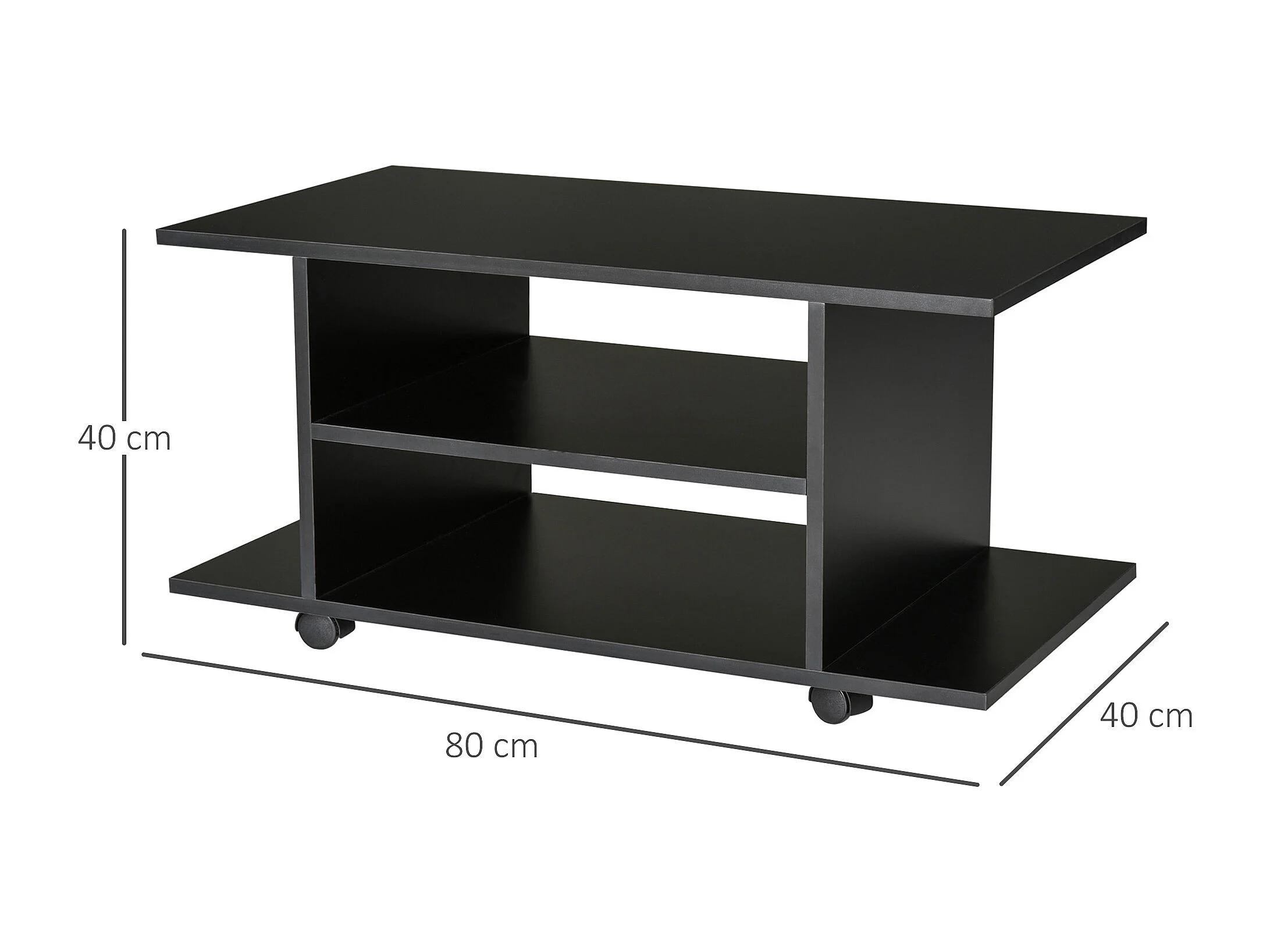 Set 2 tavolini da caffè sovrapponibili con vassoio rimovibile nero