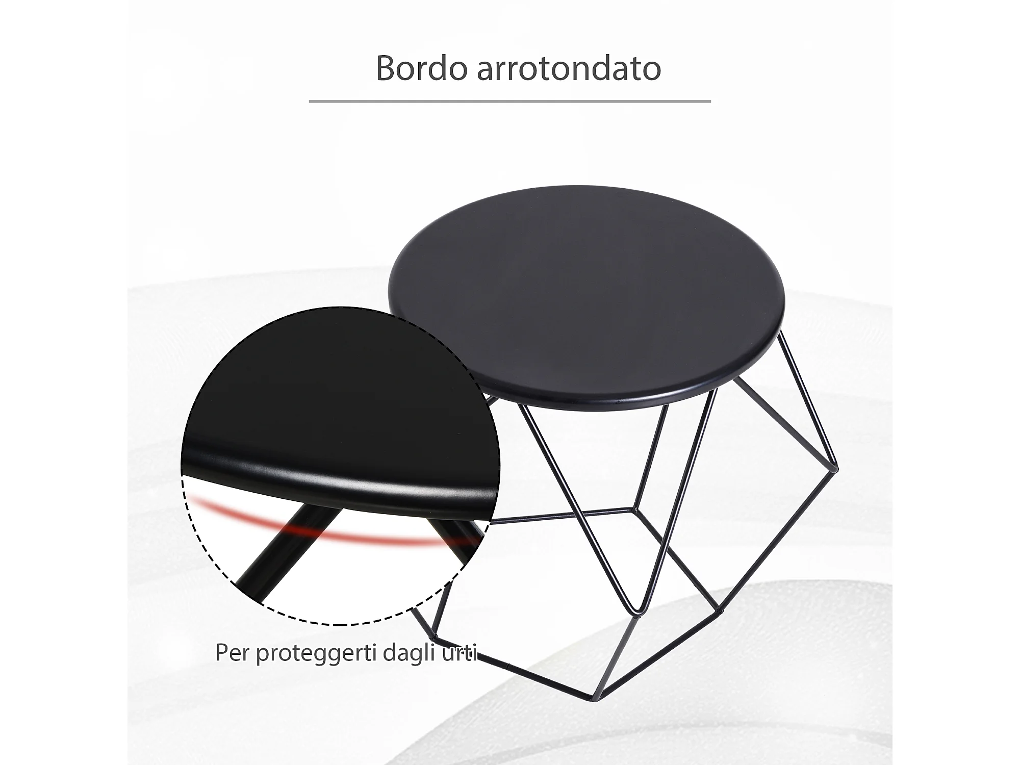 Set 2 tavolini da caffè impilabili rotondi con contenitore nero